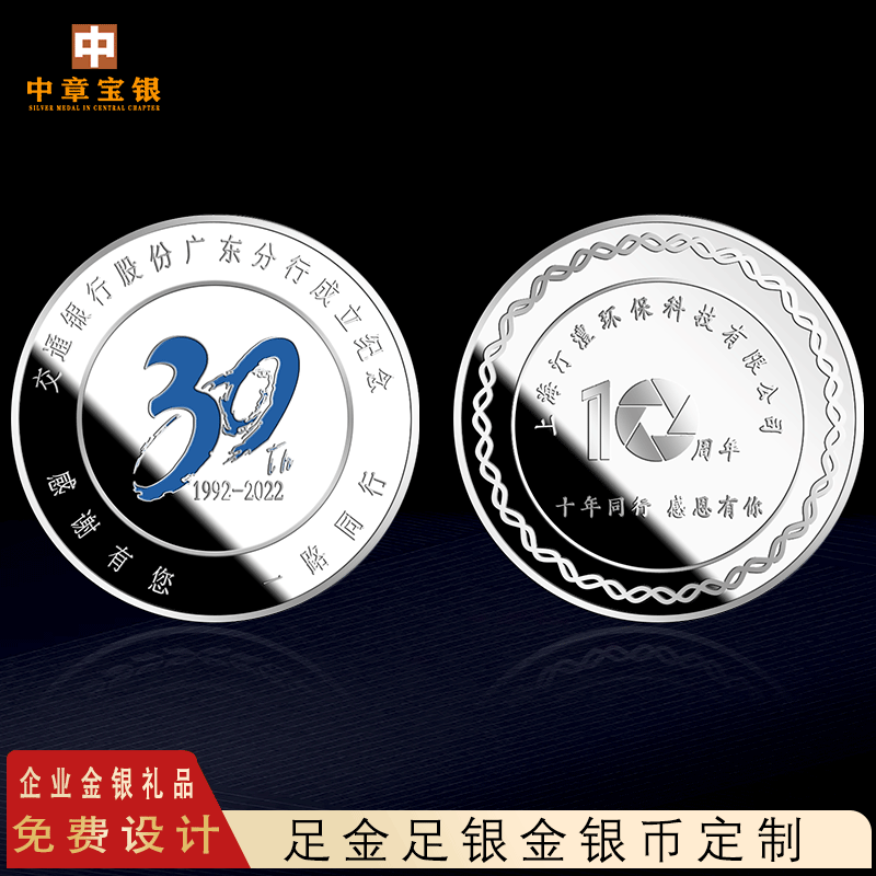 纯银银币定制员工入职周年纪念金币定做开业logo礼品刻字纪念章