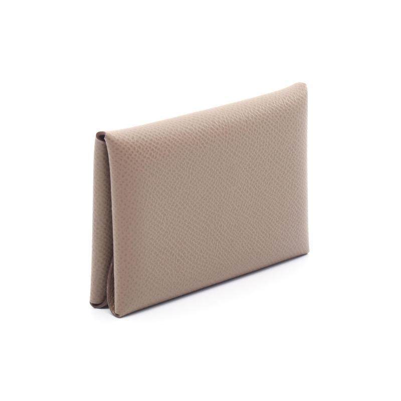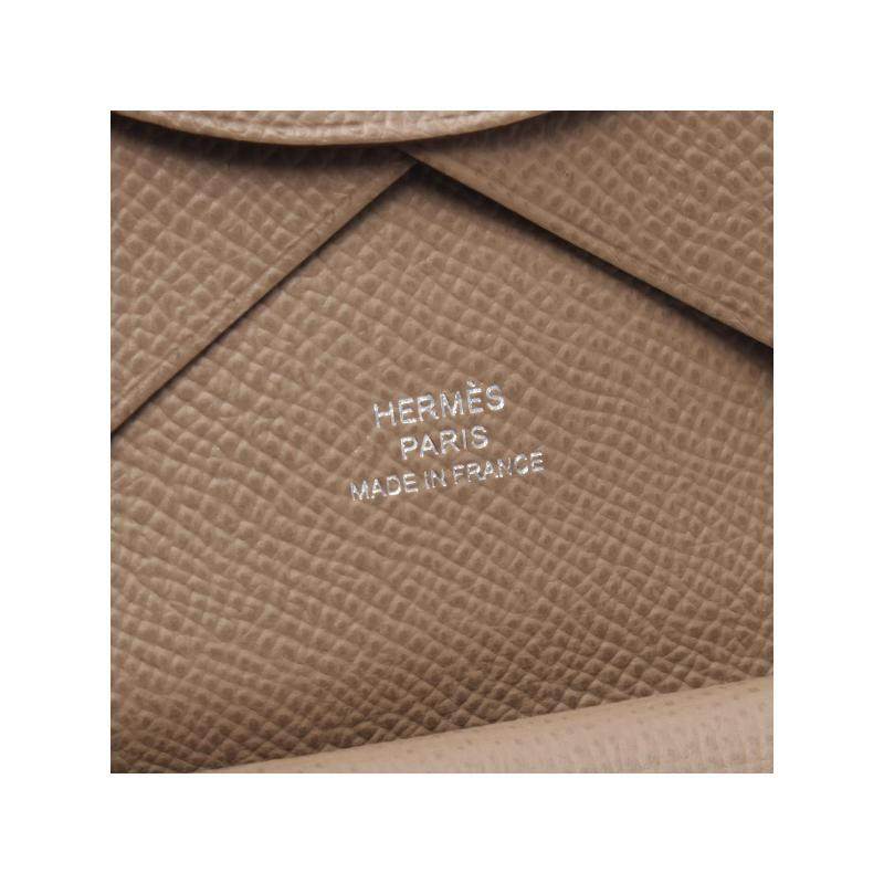 中古Hermes爱马仕女S级99新Etoup大象灰牛皮零钱包棕色高级正品