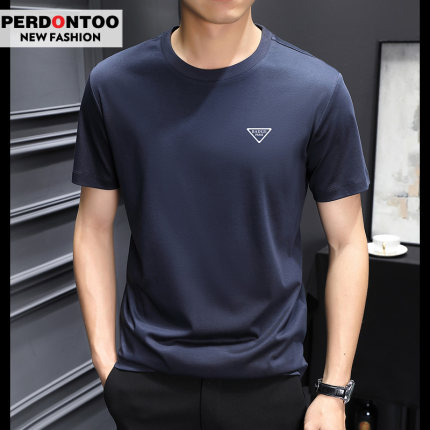 桑蚕丝冰丝短袖T恤男夏季薄款2025年新款圆领潮流宽松半袖体恤衫