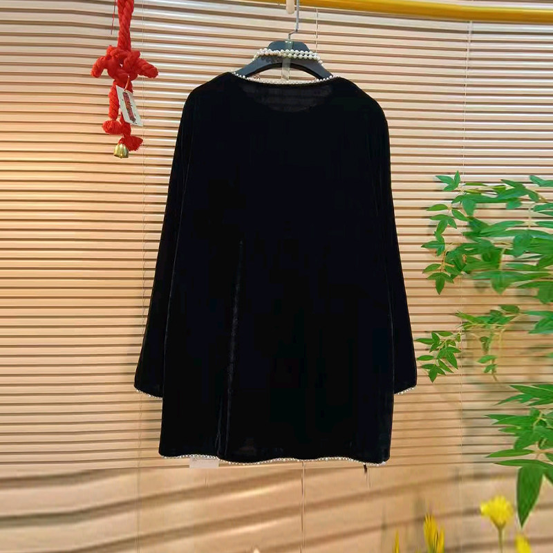 大码女装钉珠领长袖丝绒上衣