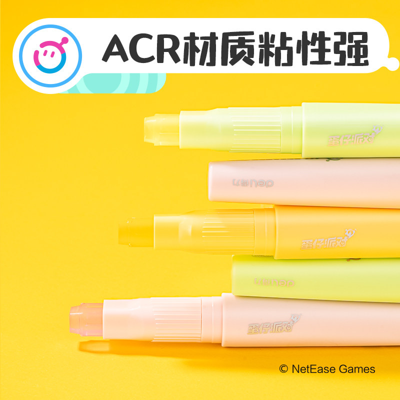 得力蛋仔派对联名笔型固体胶棒办公用品学生用手工儿童DIY安全无毒无异味细腻高粘不易掉速干透明胶票据