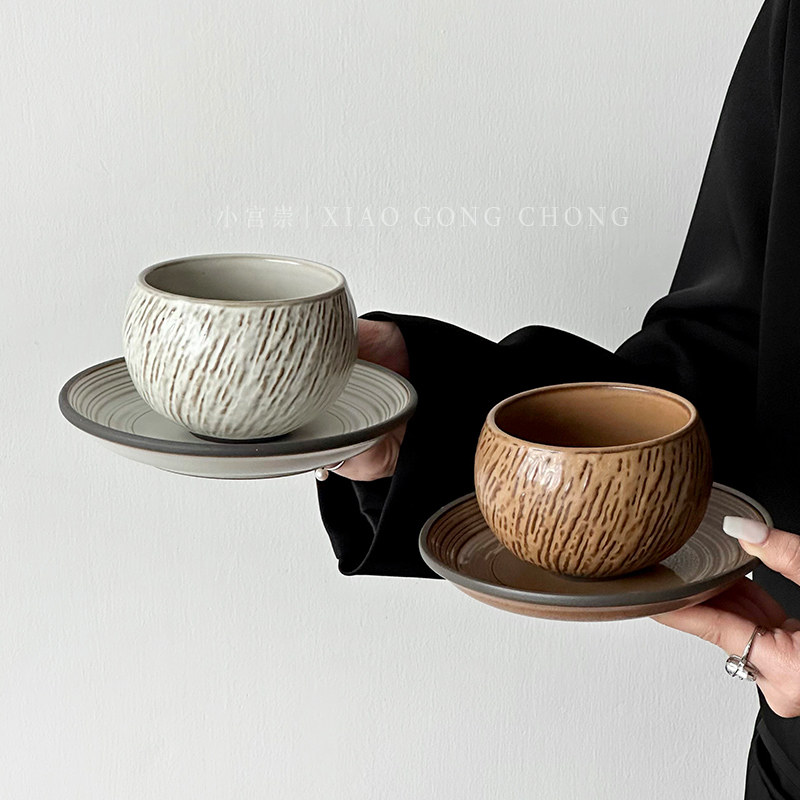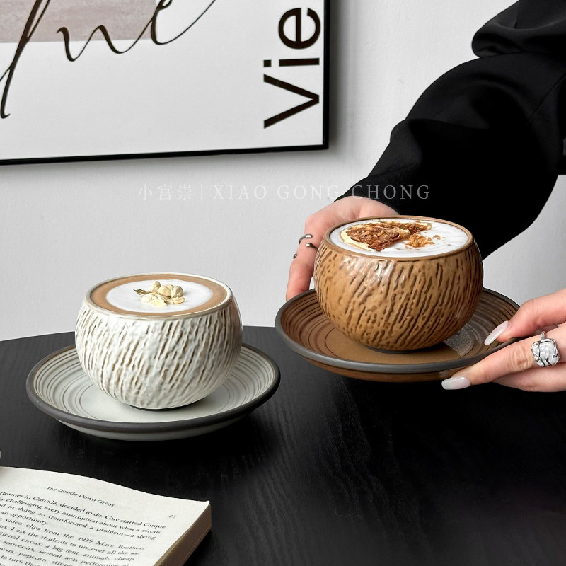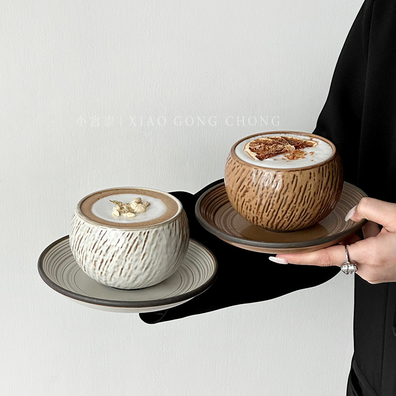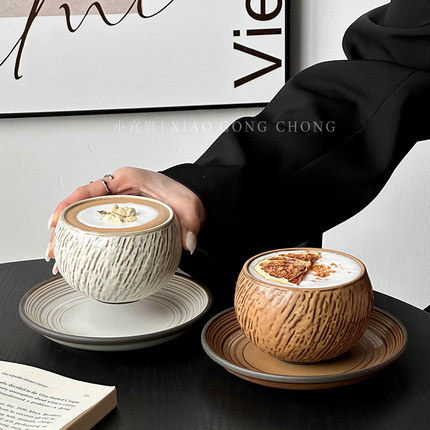 复古石纹蛋杯ins高颜值咖啡杯碟套装陶瓷杯下午茶拿铁卡布奇诺杯