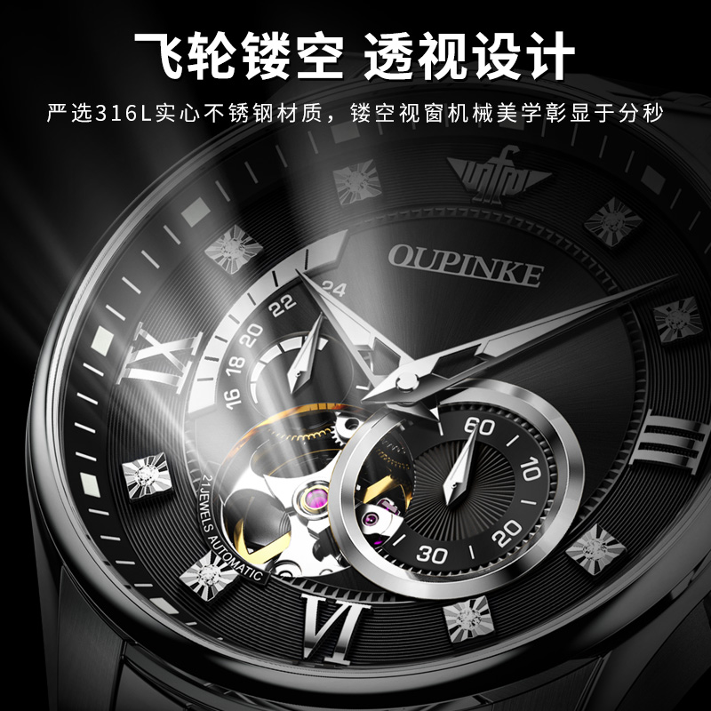 欧品客官方正品牌瑞士认证手表男士全自动机械表镂空钢带防水十大