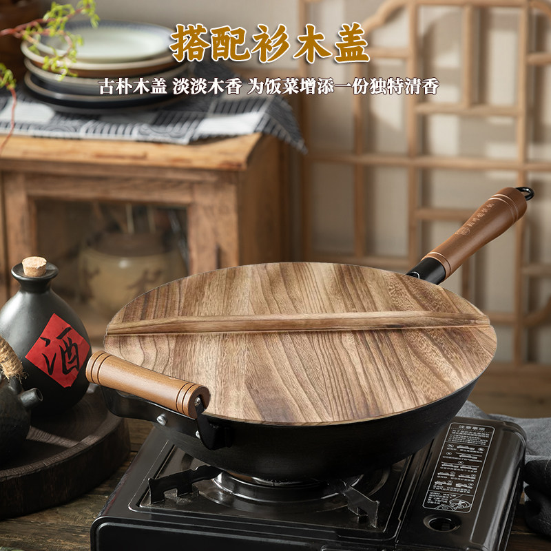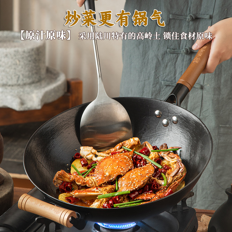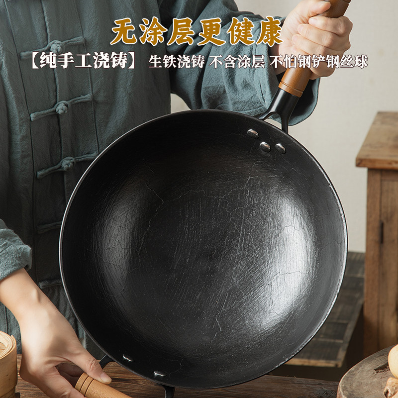 轻量龟纹铁锅家用炒菜锅无涂层老式不粘炒锅燃气灶陆川铁锅免开锅