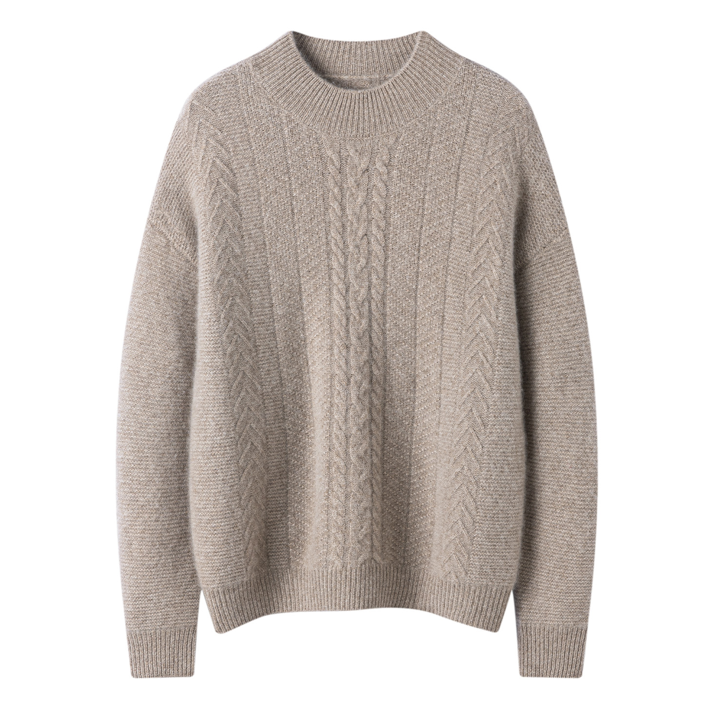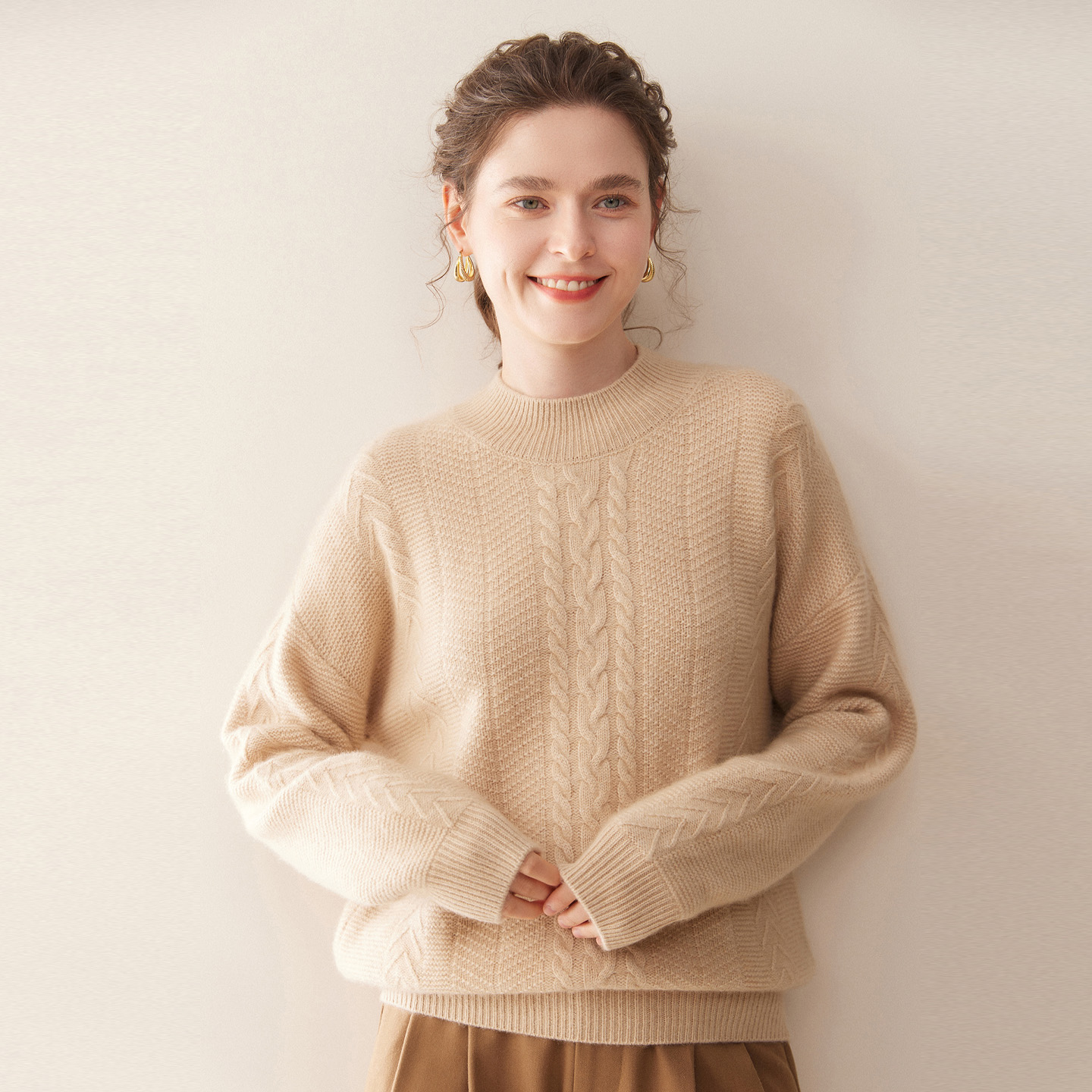 秋冬季半高领双股加厚山羊绒衫女宽松套头毛衣软糯高端针织打底衫
