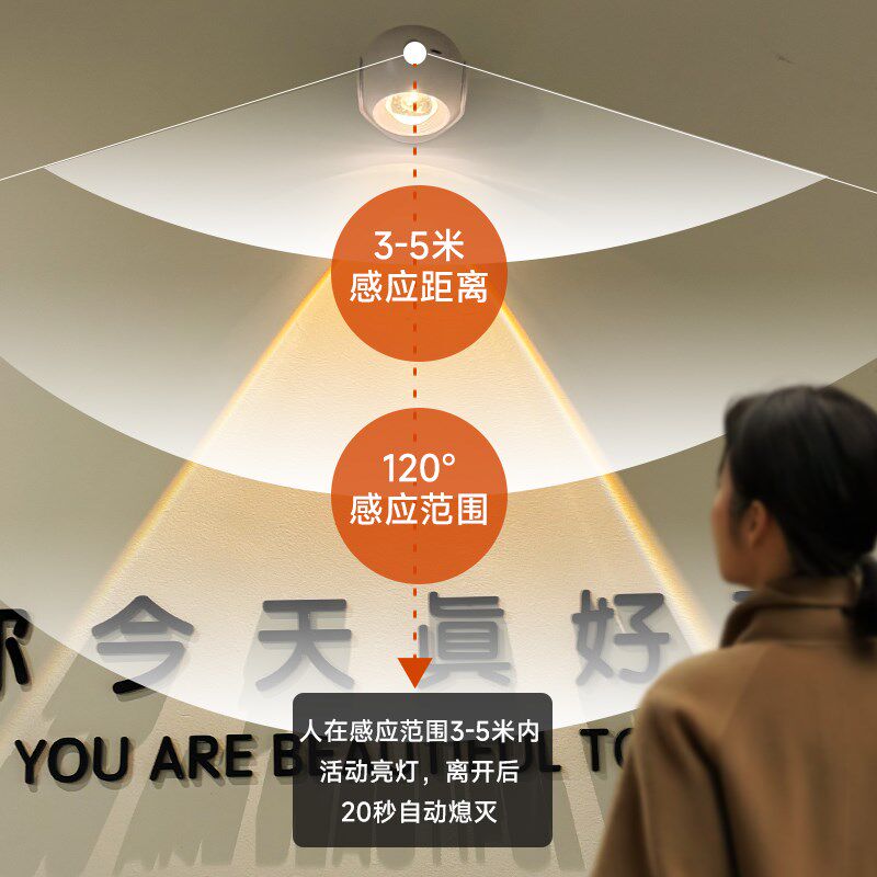 感应灯免布线人体感应磁吸墙壁灯入户门橱柜灯客厅充电小山丘射灯