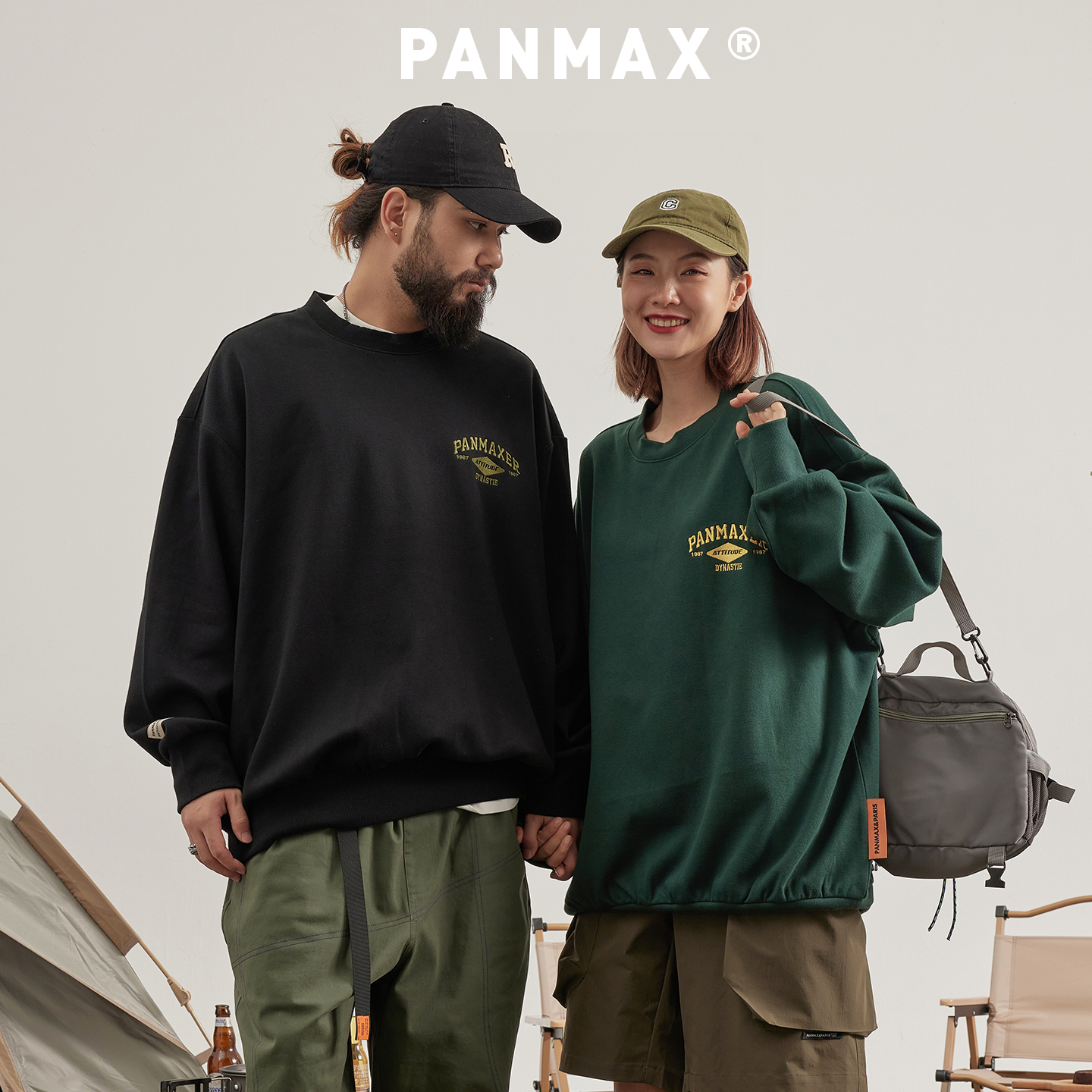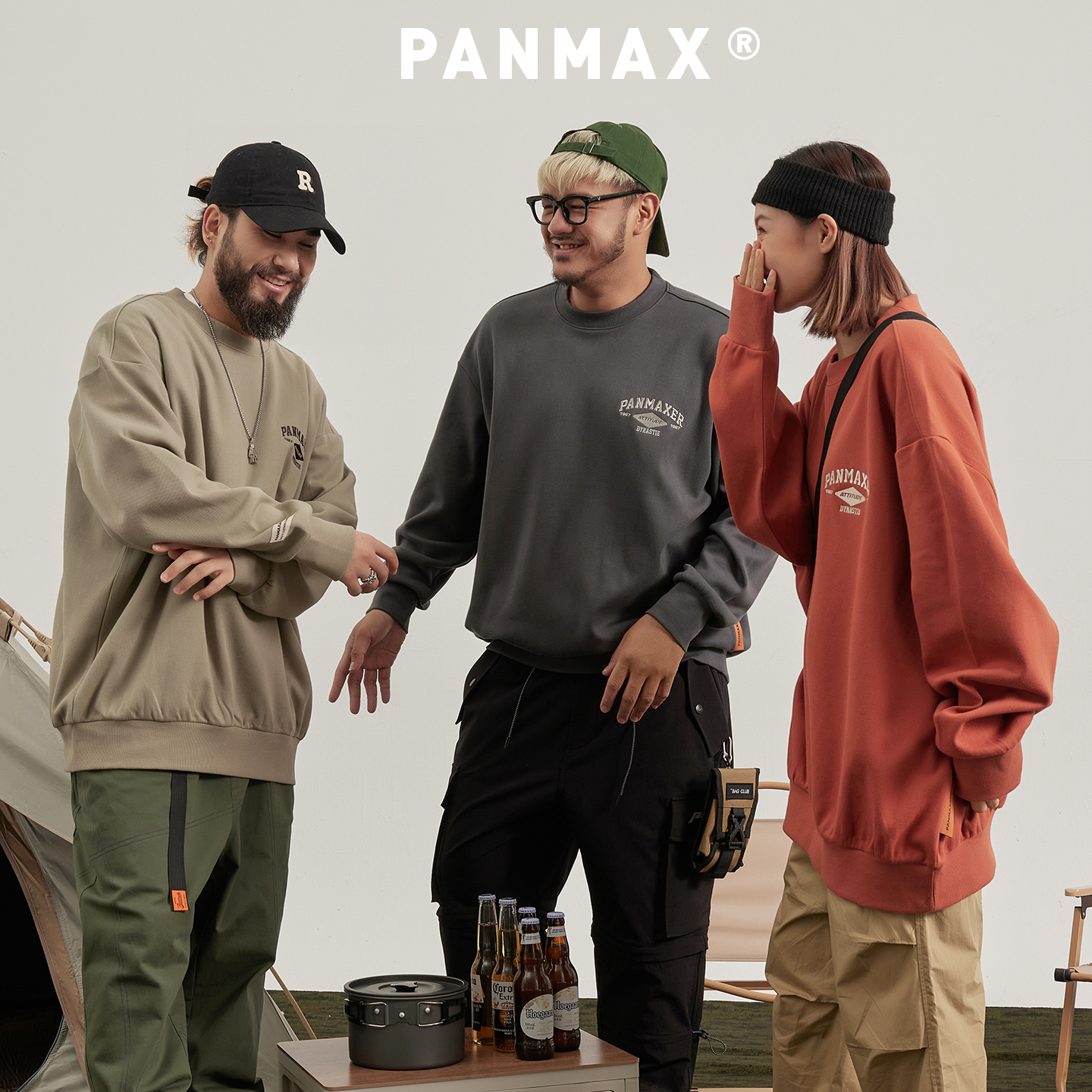 PANMAX大码男装2025秋重工气垫蜂巢刺绣肌理感圆领卫衣复古情侣装
