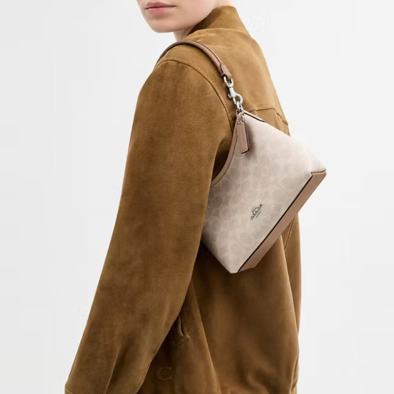 COACH/蔻驰Laurel 19银色金属硬件涂层帆布手提包斜挎单肩包CBH15