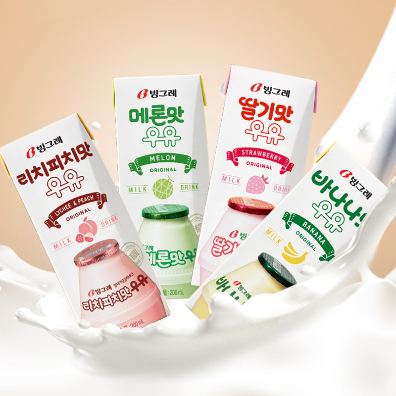 韩国进口宾格瑞香蕉牛奶草莓哈密瓜荔枝蜜桃板栗风味含乳饮品网红