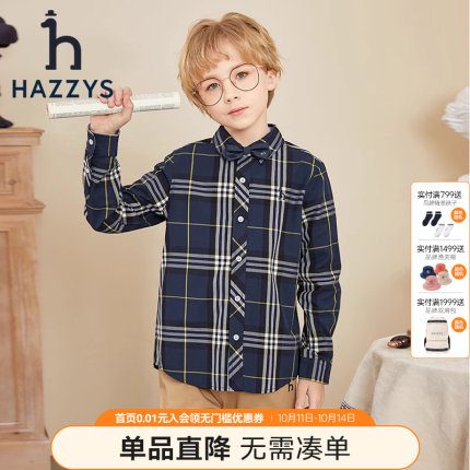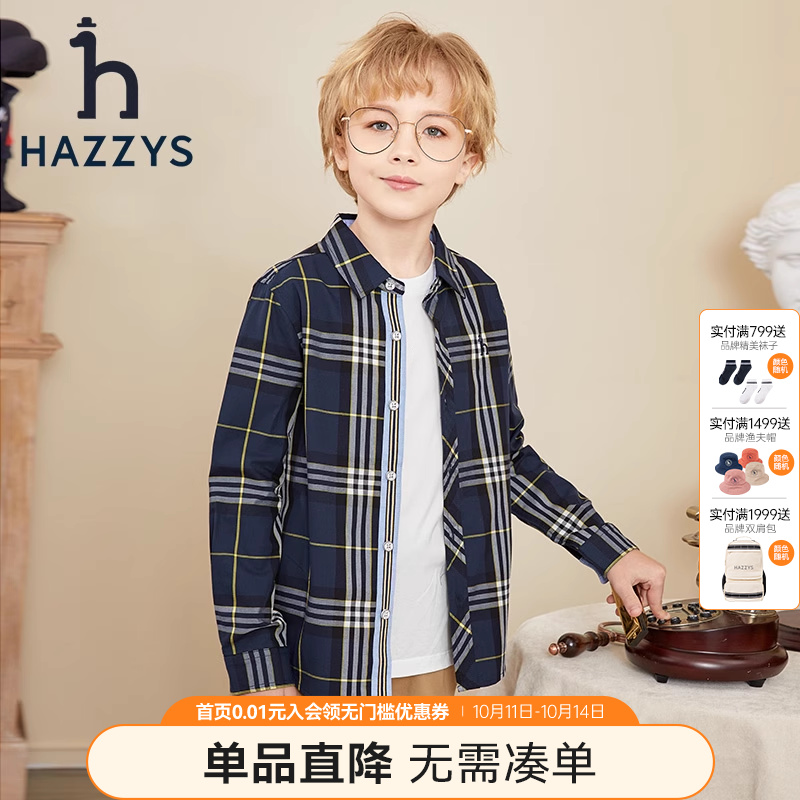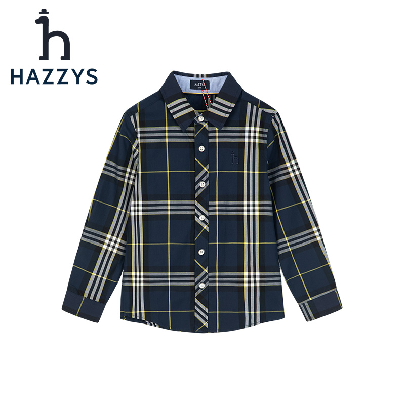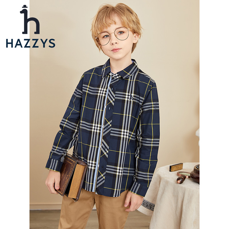 hzzys哈吉斯童装男童2022秋季新品棉质学院格子长袖衬衫