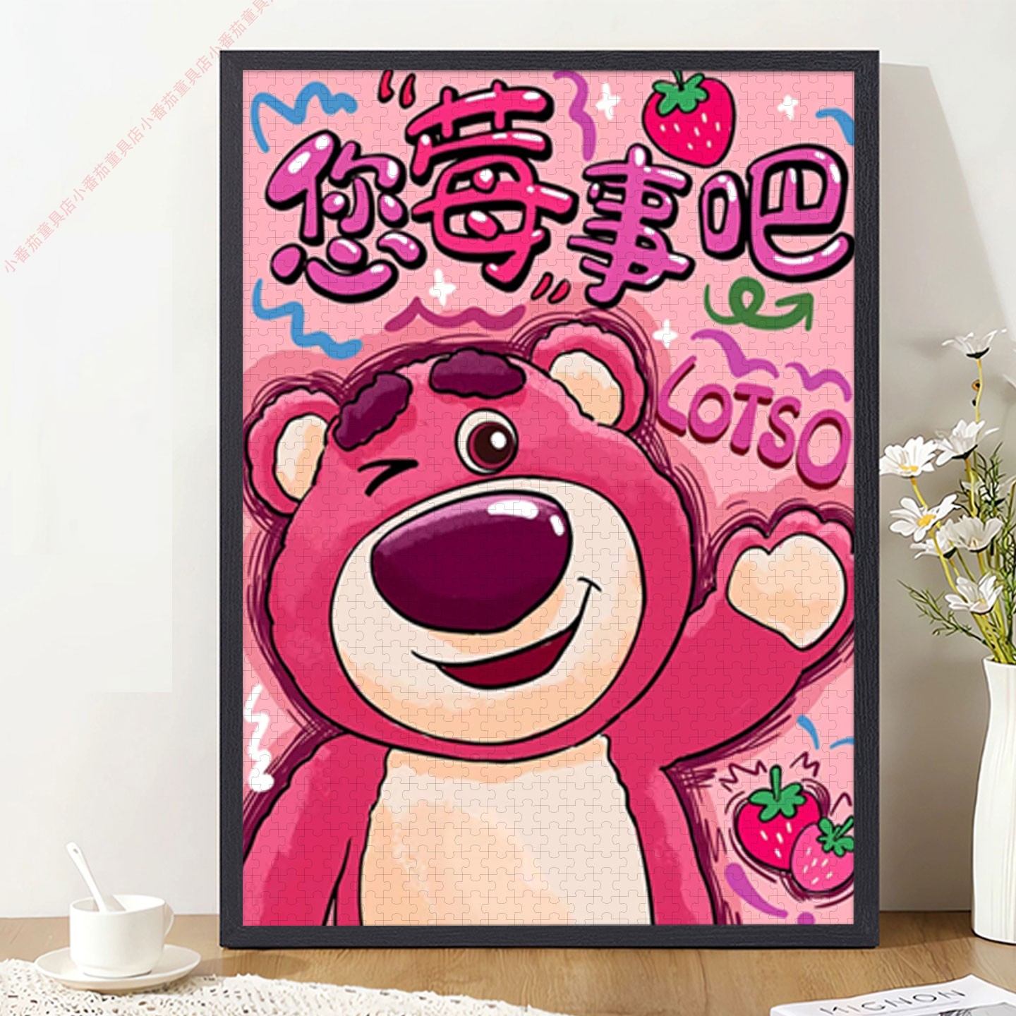 草莓熊拼图1000片带相框成人版高级感治愈系高质量女生礼物装饰画