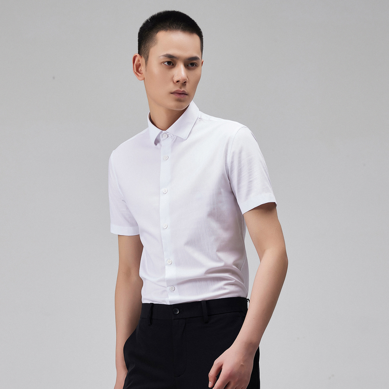 BONI/堡尼夏季新品商务短袖衬衫混纺修身衬衣净色上衣男GL311C61A