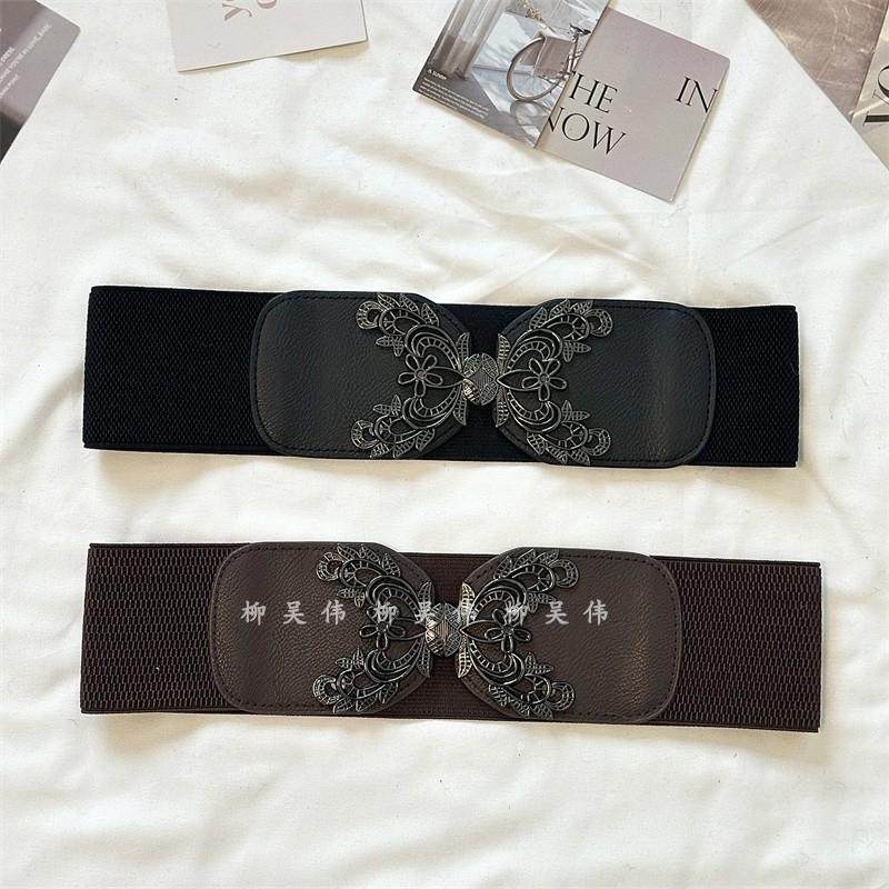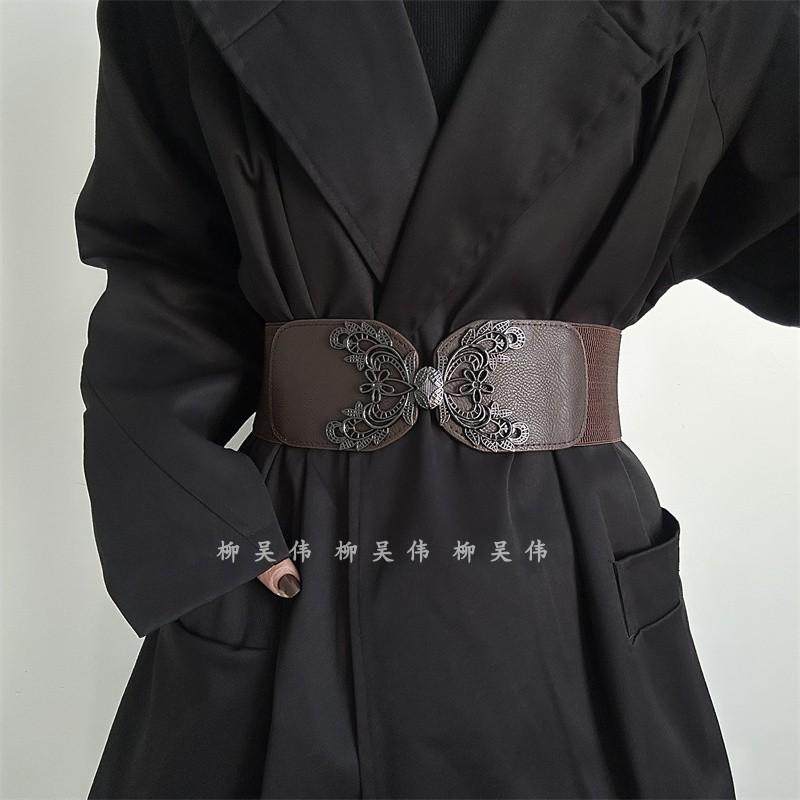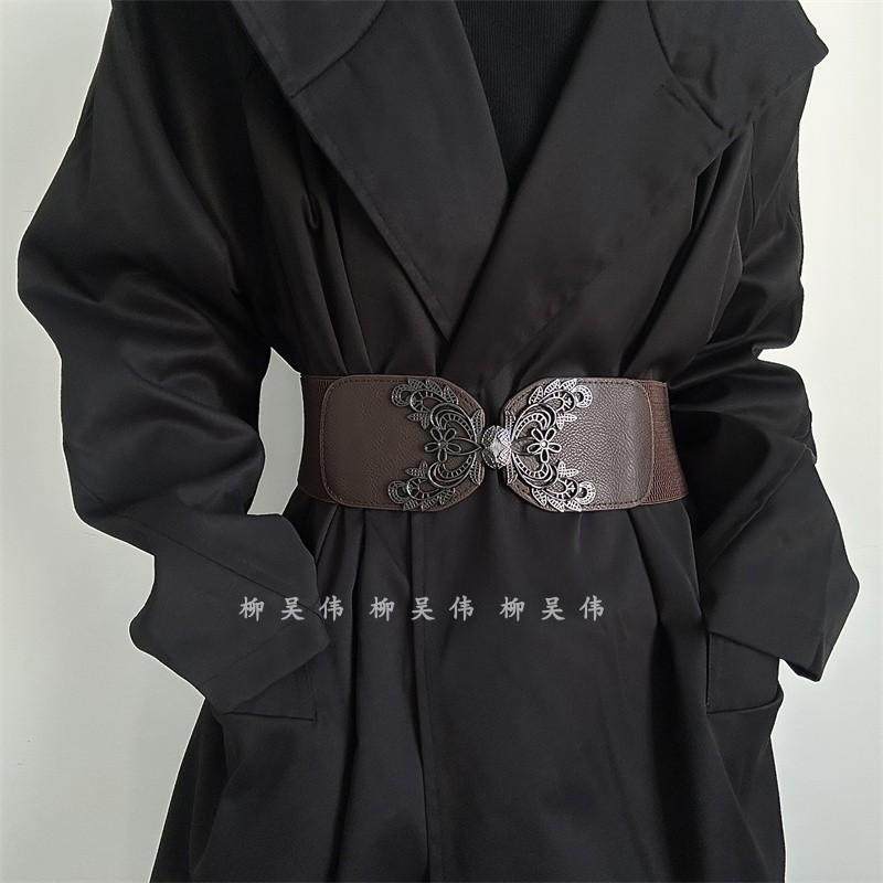 腰封女士简约百搭配裙子古风汉服时尚宽腰带松紧黑色束腰裙带装饰