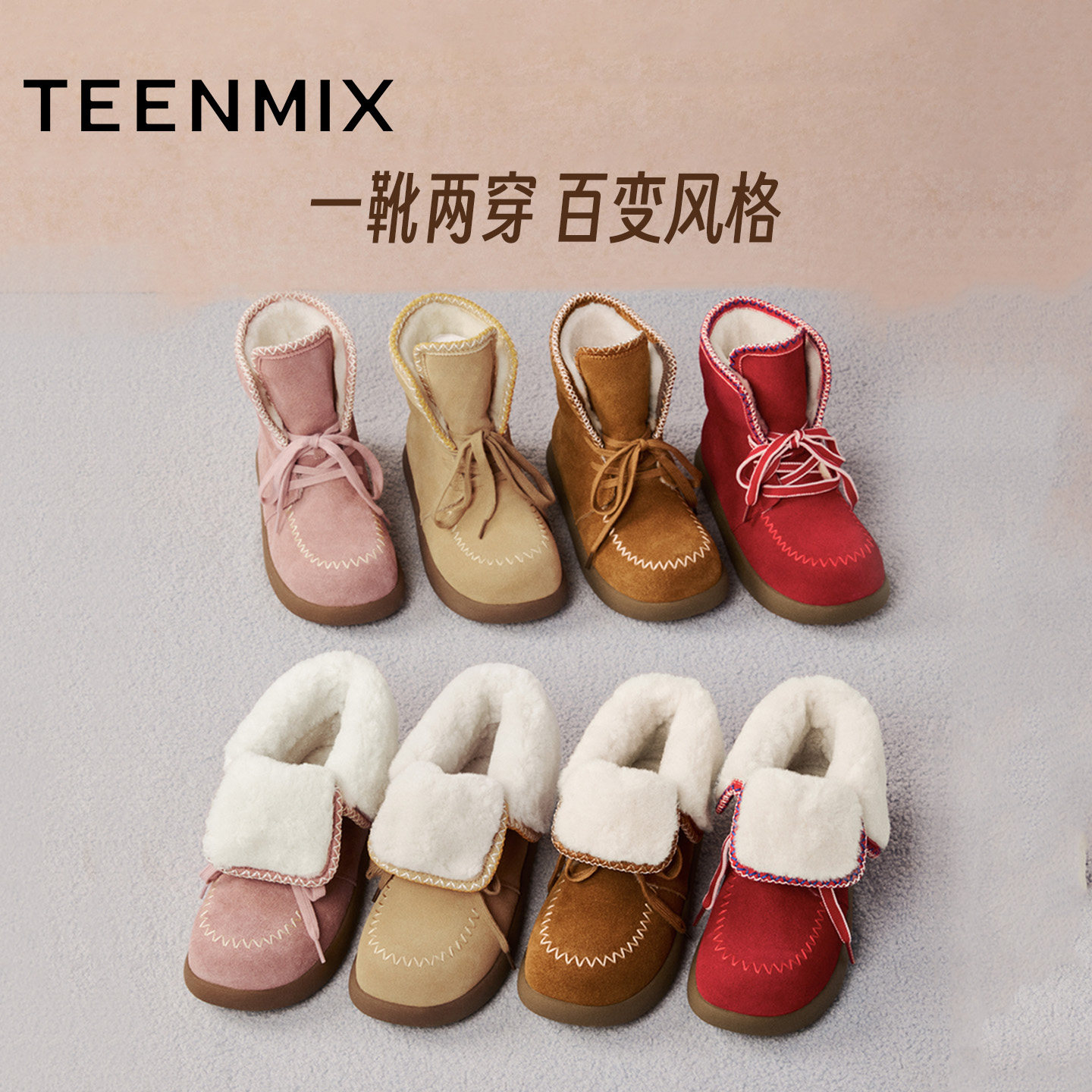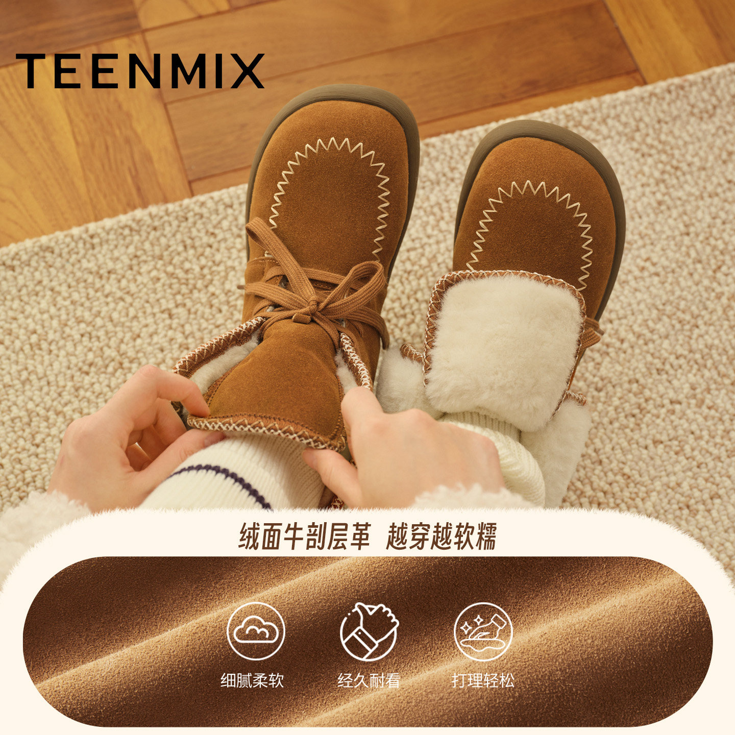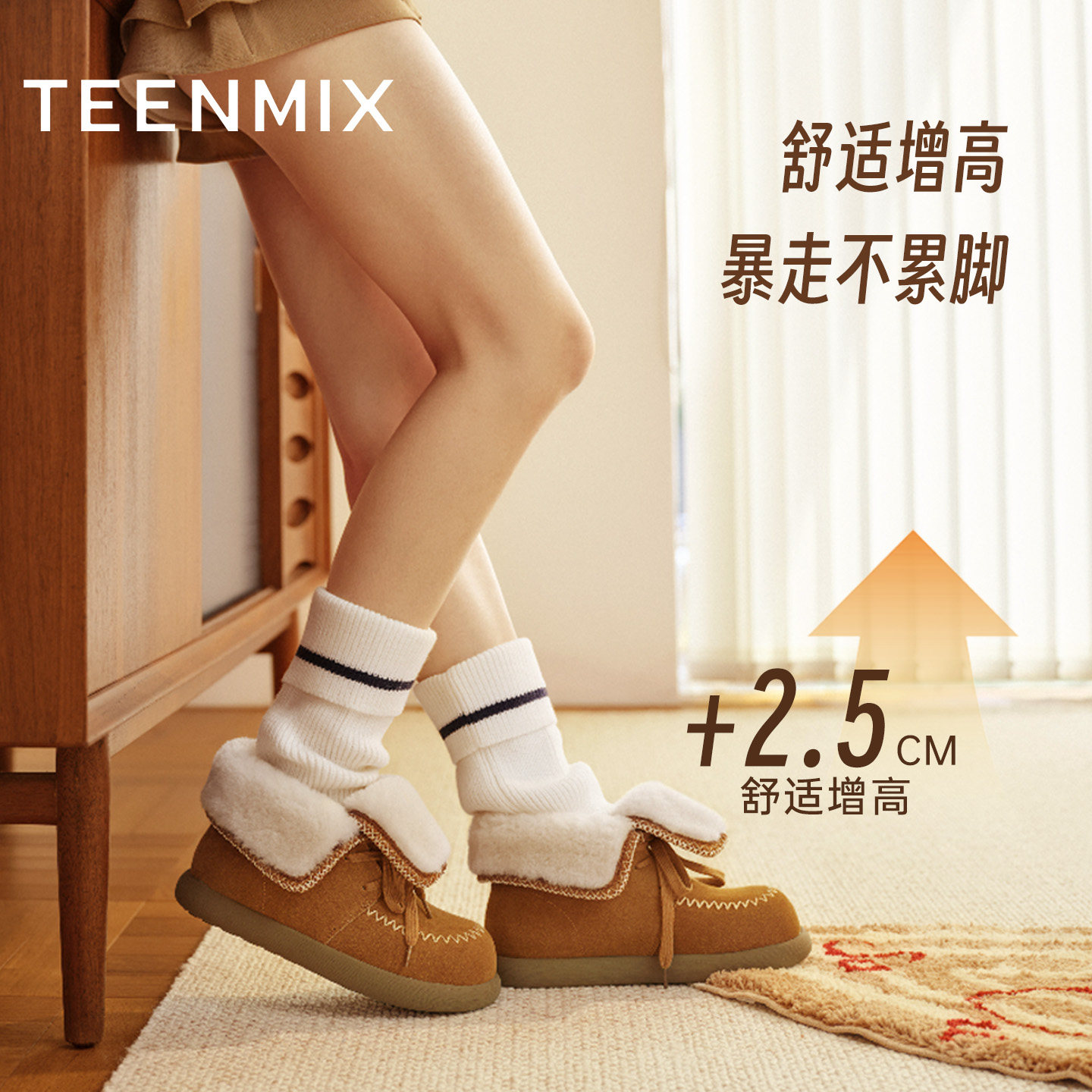 天美意复古厚底加绒毛毛鞋雪地靴女棉鞋短靴冬季新款KXD53DD5