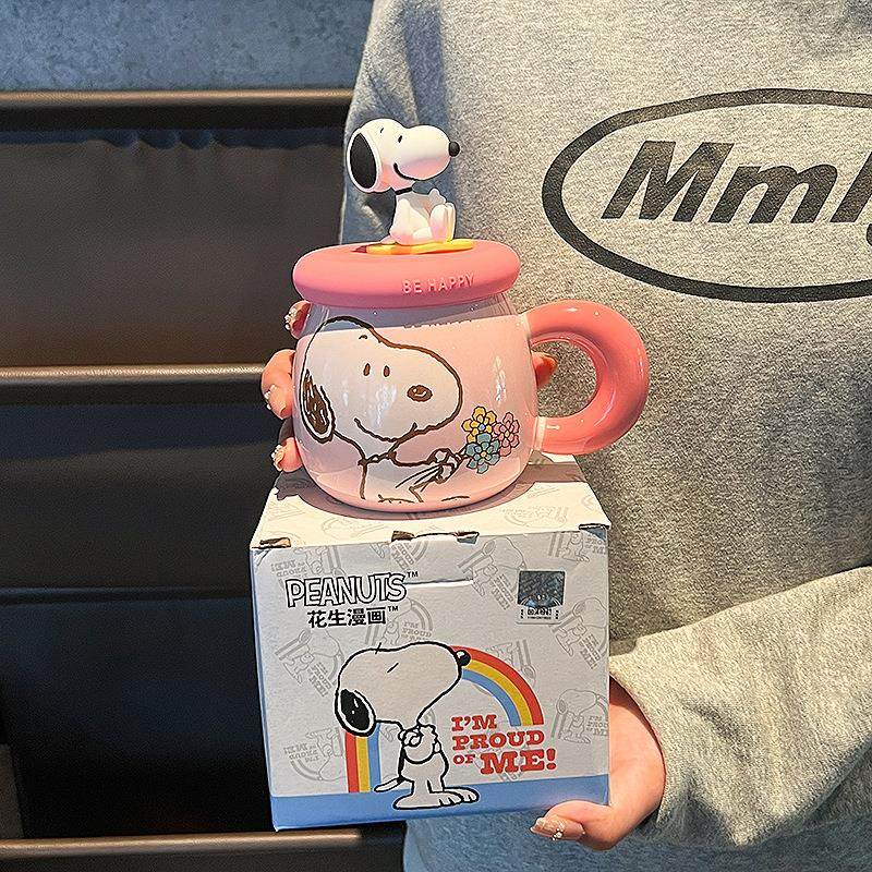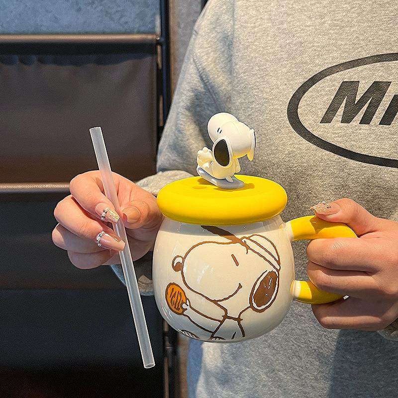 史努比马克杯2024新款吸管水杯女生陶瓷杯儿童牛奶杯可爱生日礼物