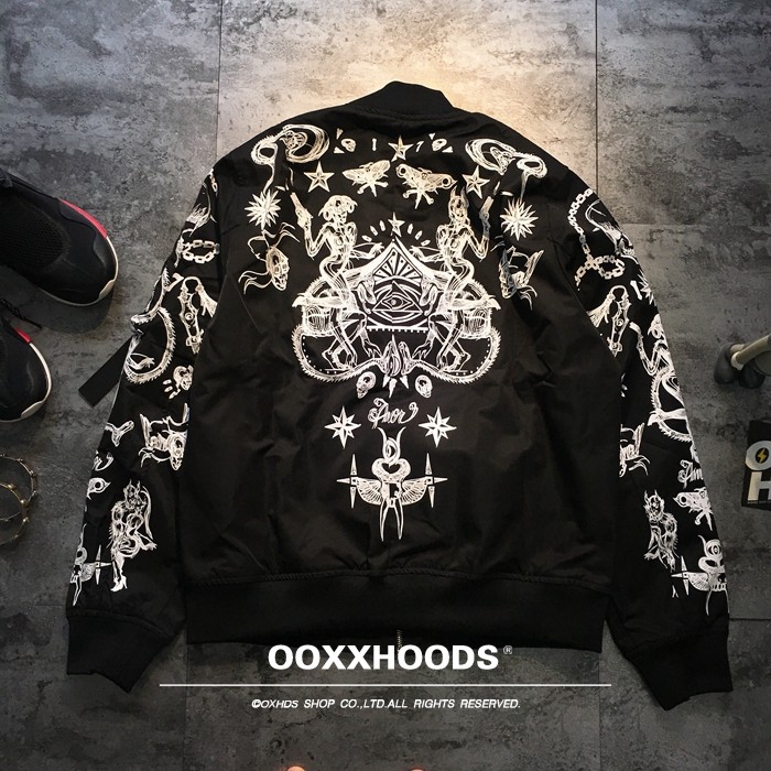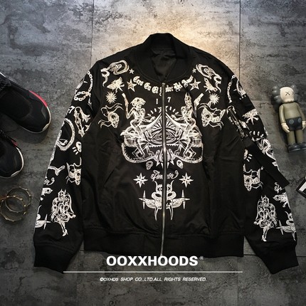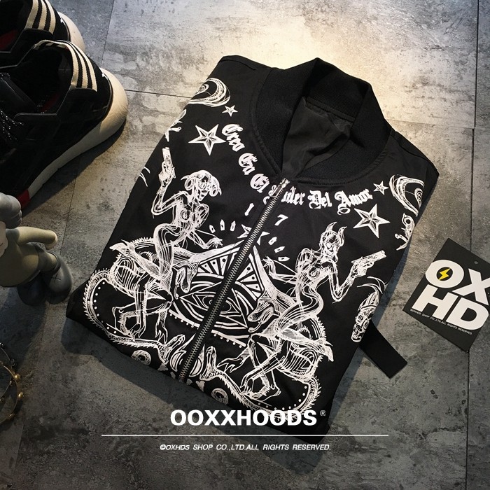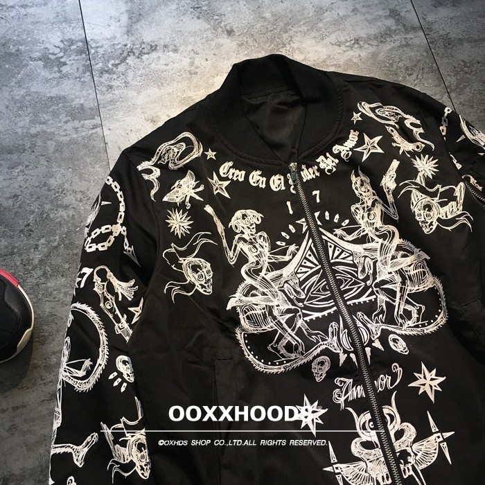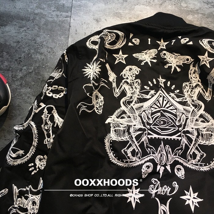 23欧美休闲潮流黑白印花抽象几何骷髅女人男装女穿BF男友棒球夹克