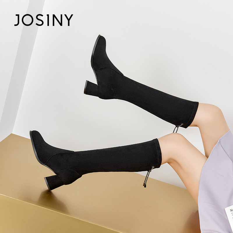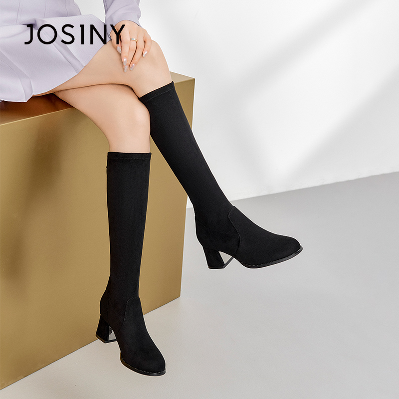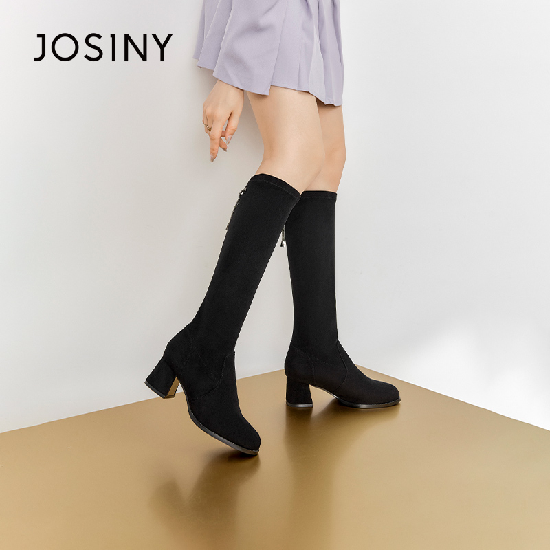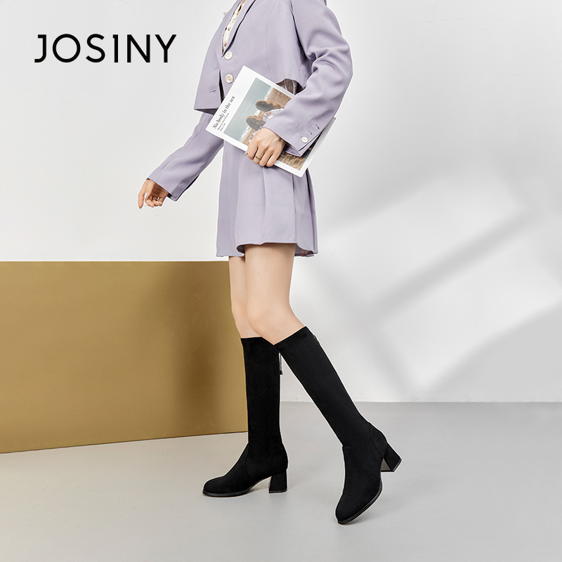 卓诗尼女靴时装靴粗跟简约长筒靴秋冬瘦瘦靴欧美风女鞋高筒靴通勤