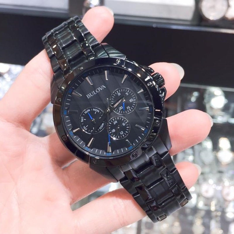 Bulova宝路华手表男表蓝针经典多功能黑色表盘钢带欧美腕表98C121
