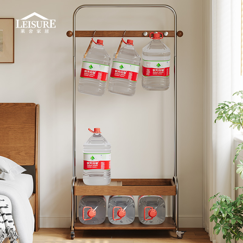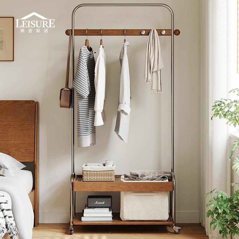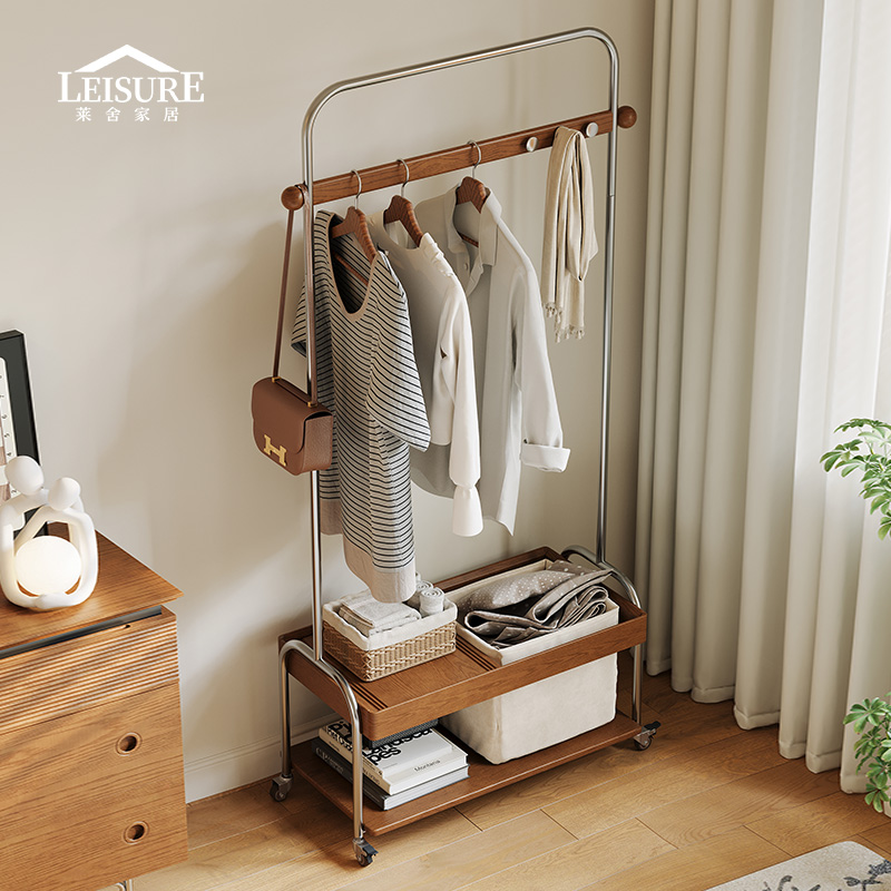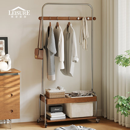 莱舍衣帽架落地卧室家用实木挂衣架客厅可移动置物架不锈钢收纳架