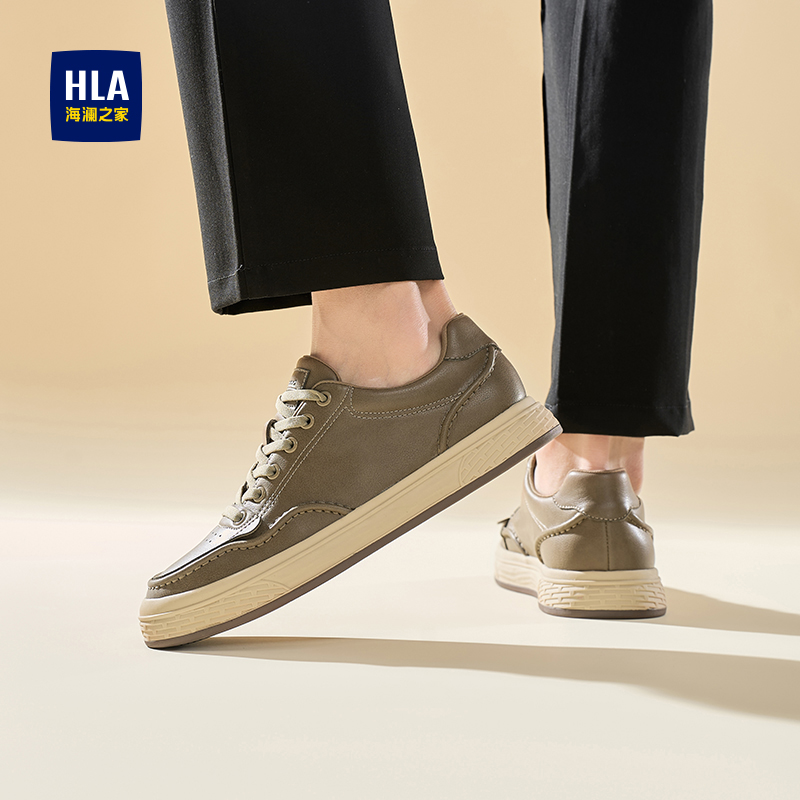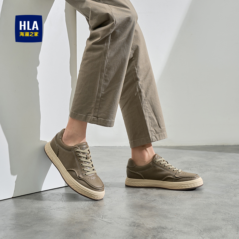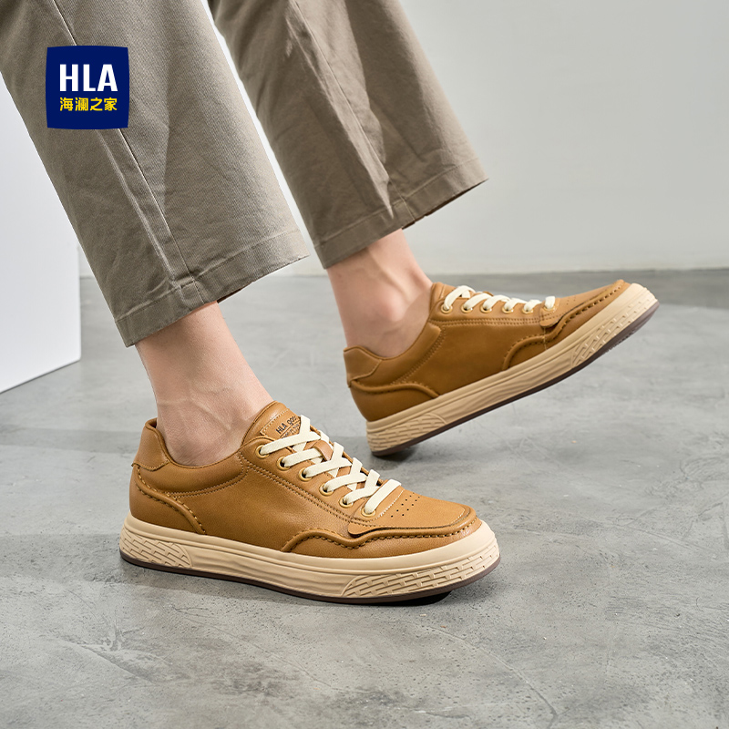HLA/海澜之家男鞋新款秋冬皮面板鞋休闲皮鞋透气百搭英伦风鞋子男