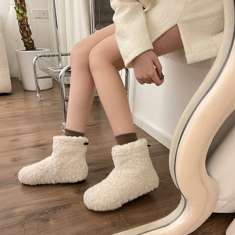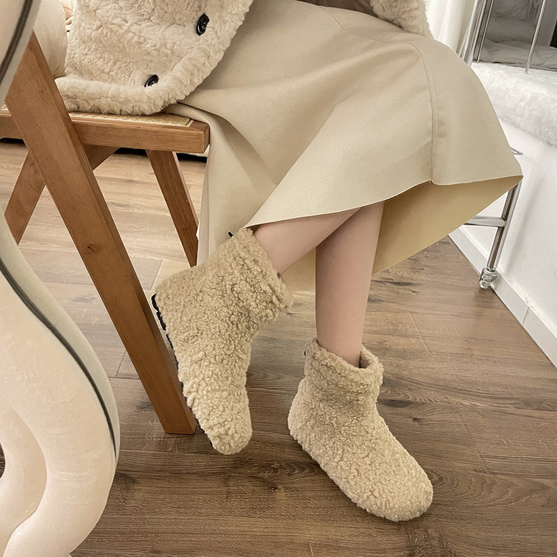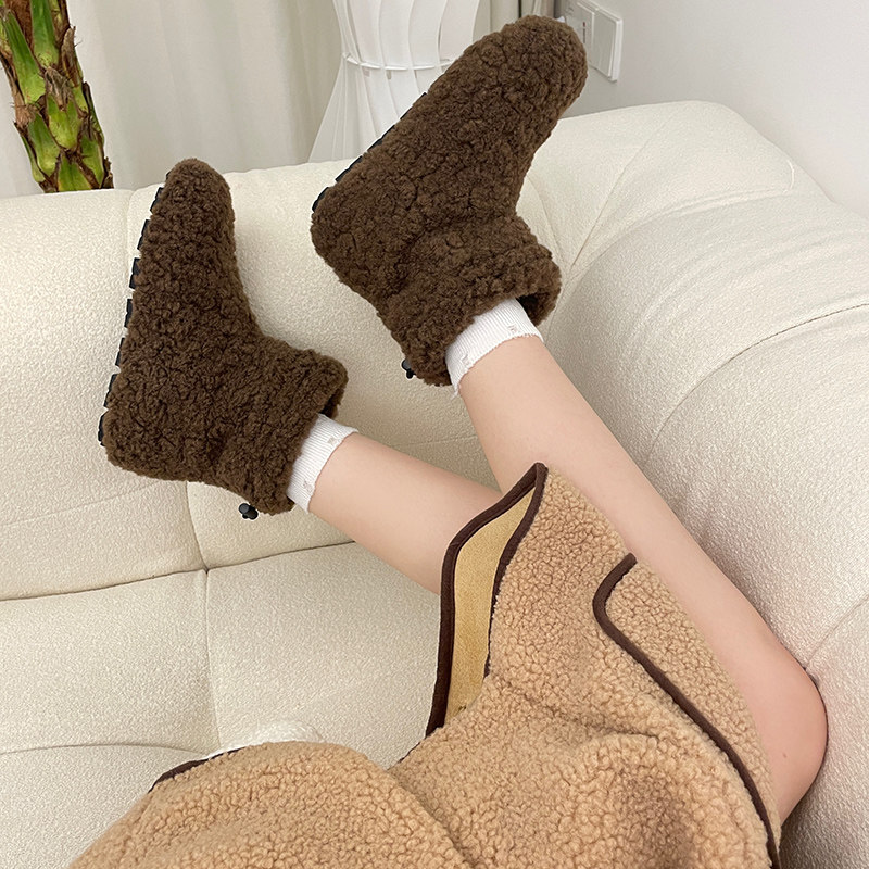 GEGELV冬季丑萌毛毛靴女外穿保暖加厚绒平底套筒雪地短靴可爱棉鞋