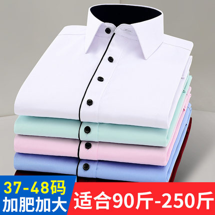 男士加肥加大衬衫大号胖子大码男装白色宽松商务职业长袖衬衣工装