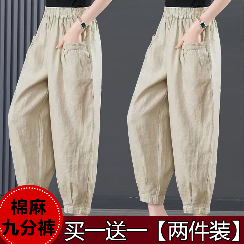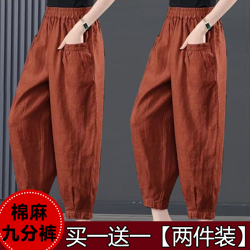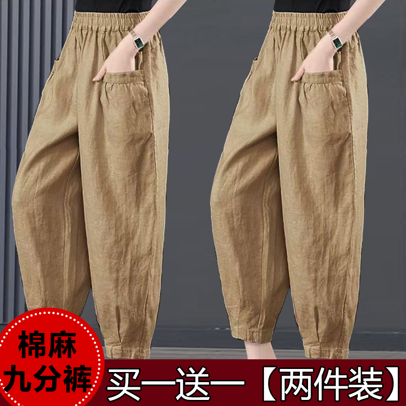 单/两件装 夏天薄款棉麻女裤中老年妈妈灯笼裤宽松大码休闲哈伦裤