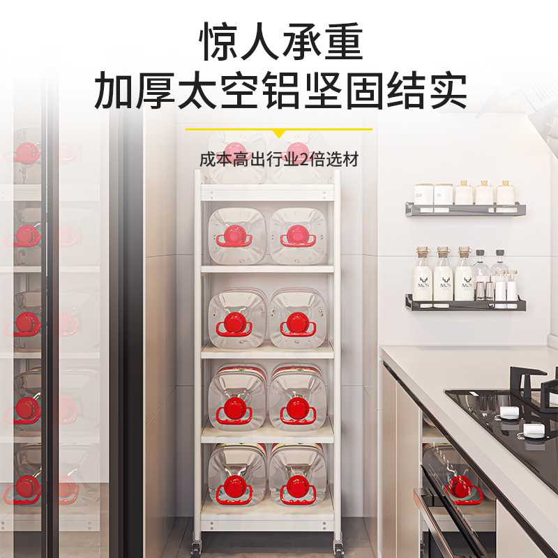 太空铝厨房微波炉置物架落地多层小家电器收纳架带轮可移动锅具架