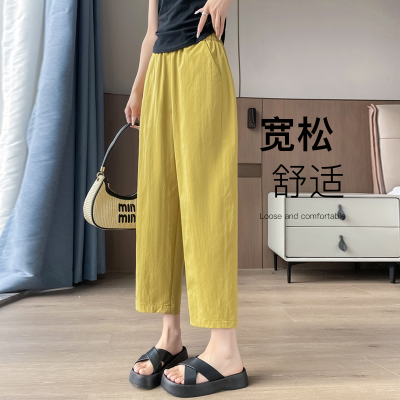 冰丝运动裤女夏季薄款2025高腰宽松休闲直筒小个子九分哈伦萝卜裤
