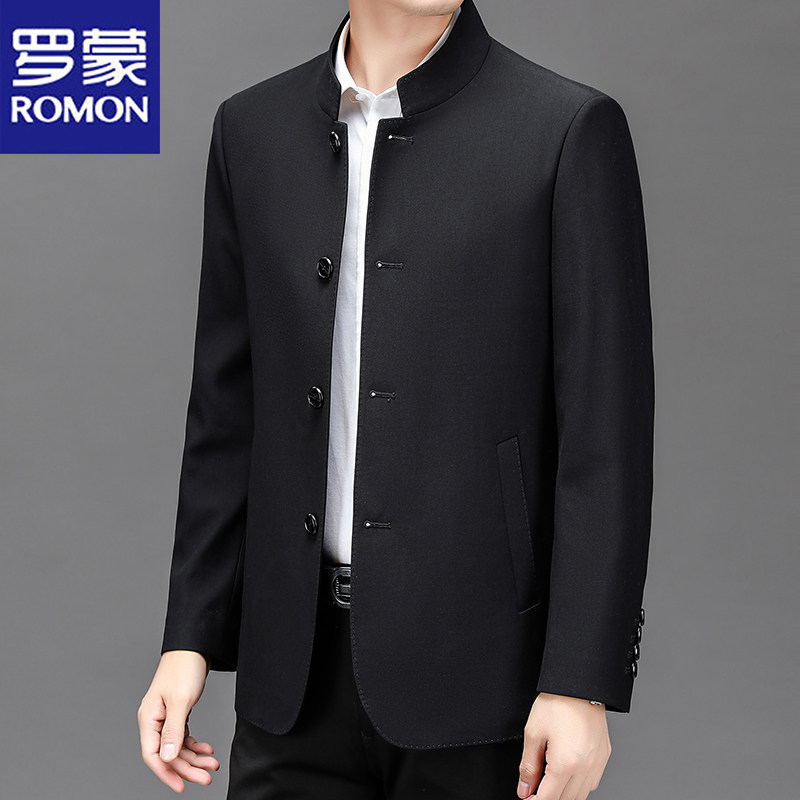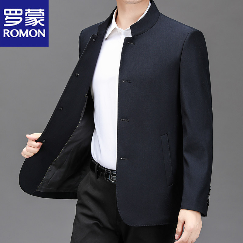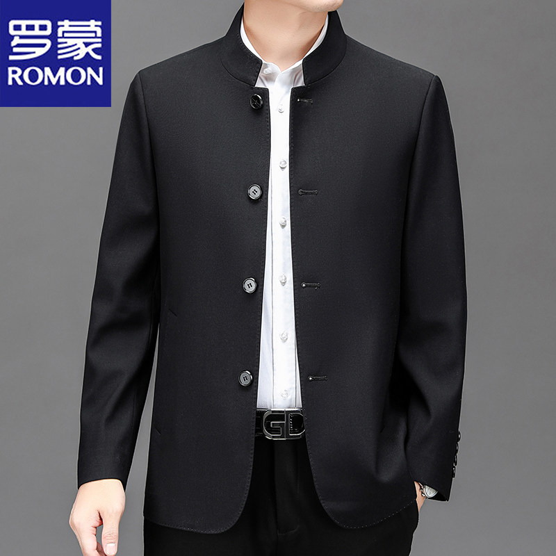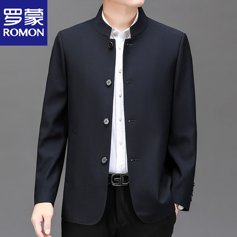 罗蒙2025春秋新款中山装外套中年男士高端中式立领中国风夹克外衣