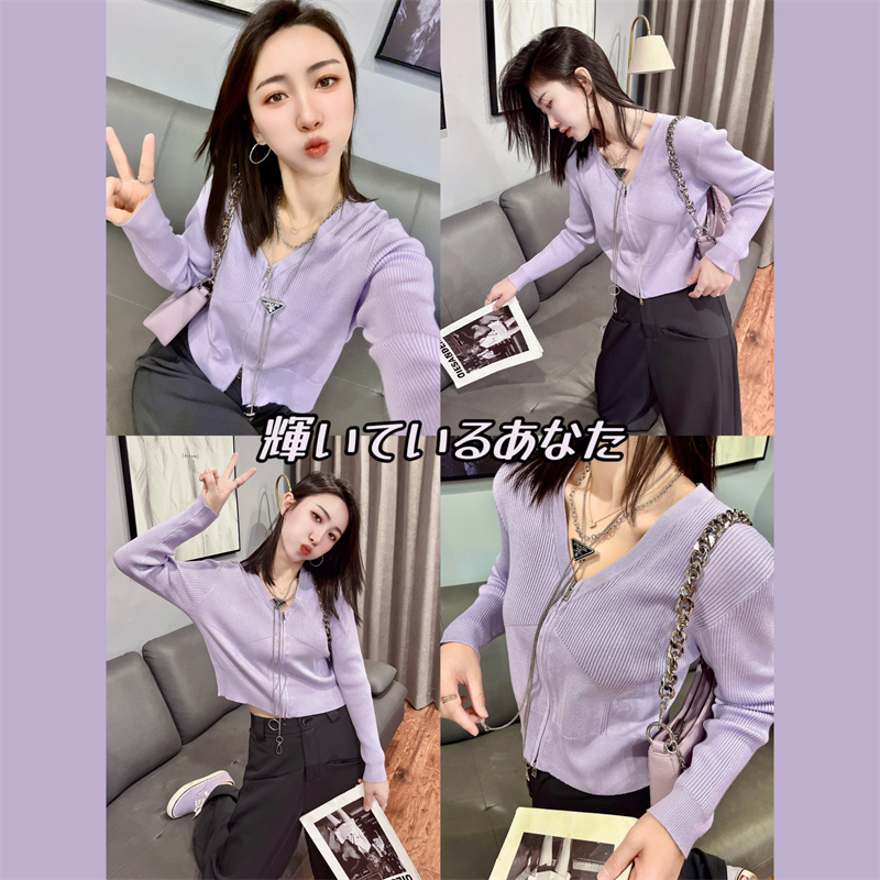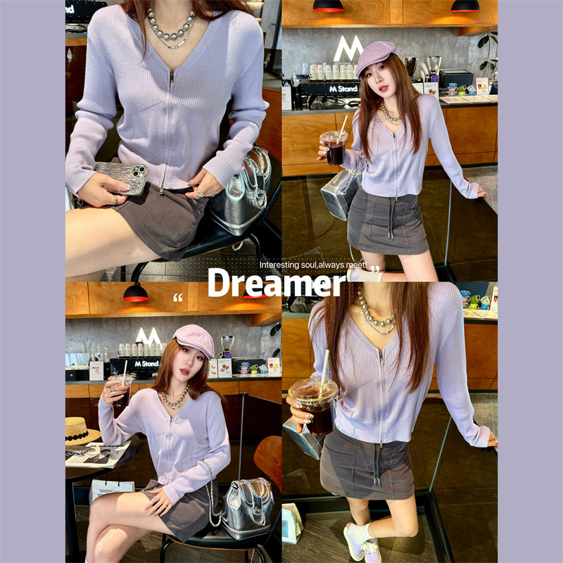 现货清仓【鱼骨针织衫】拉链上衣女宽松短款V领设计感小众T恤开衫