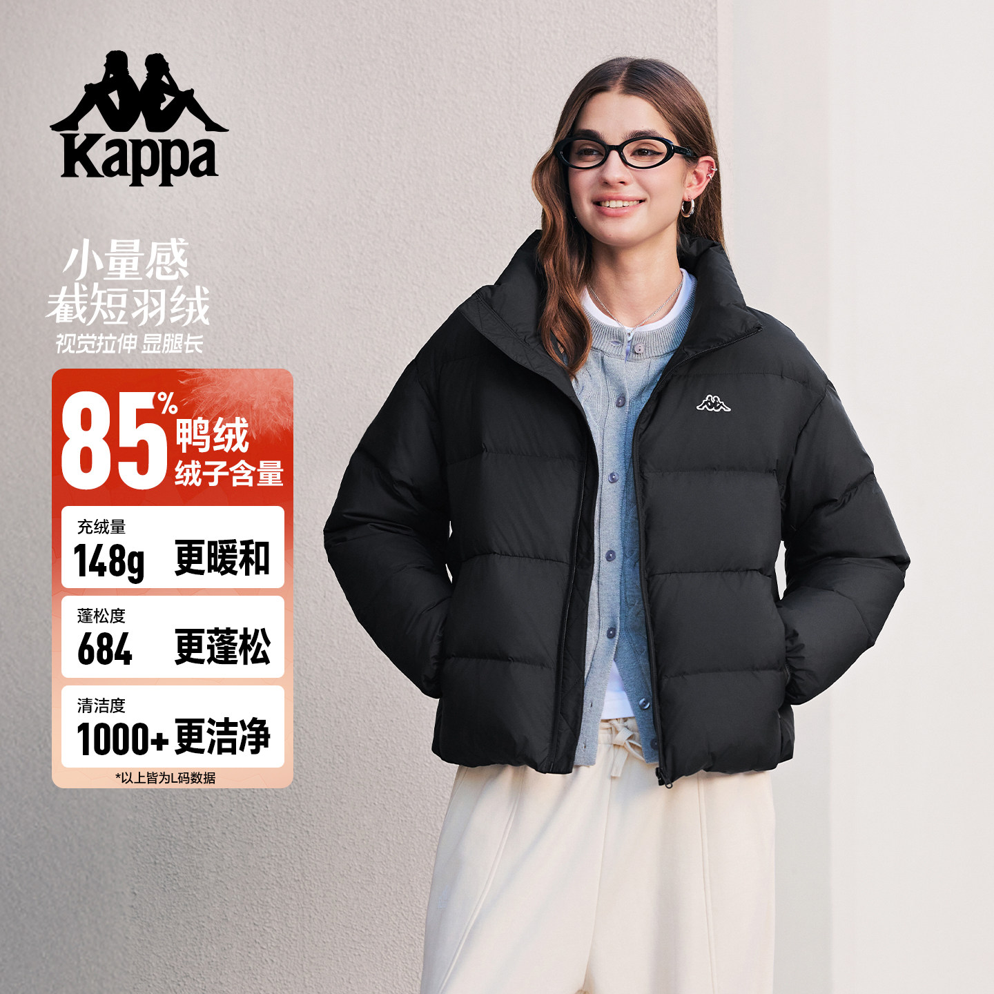 Kappa卡帕背靠背短款羽绒服女2026新款冬季保暖外套轻薄休闲立领