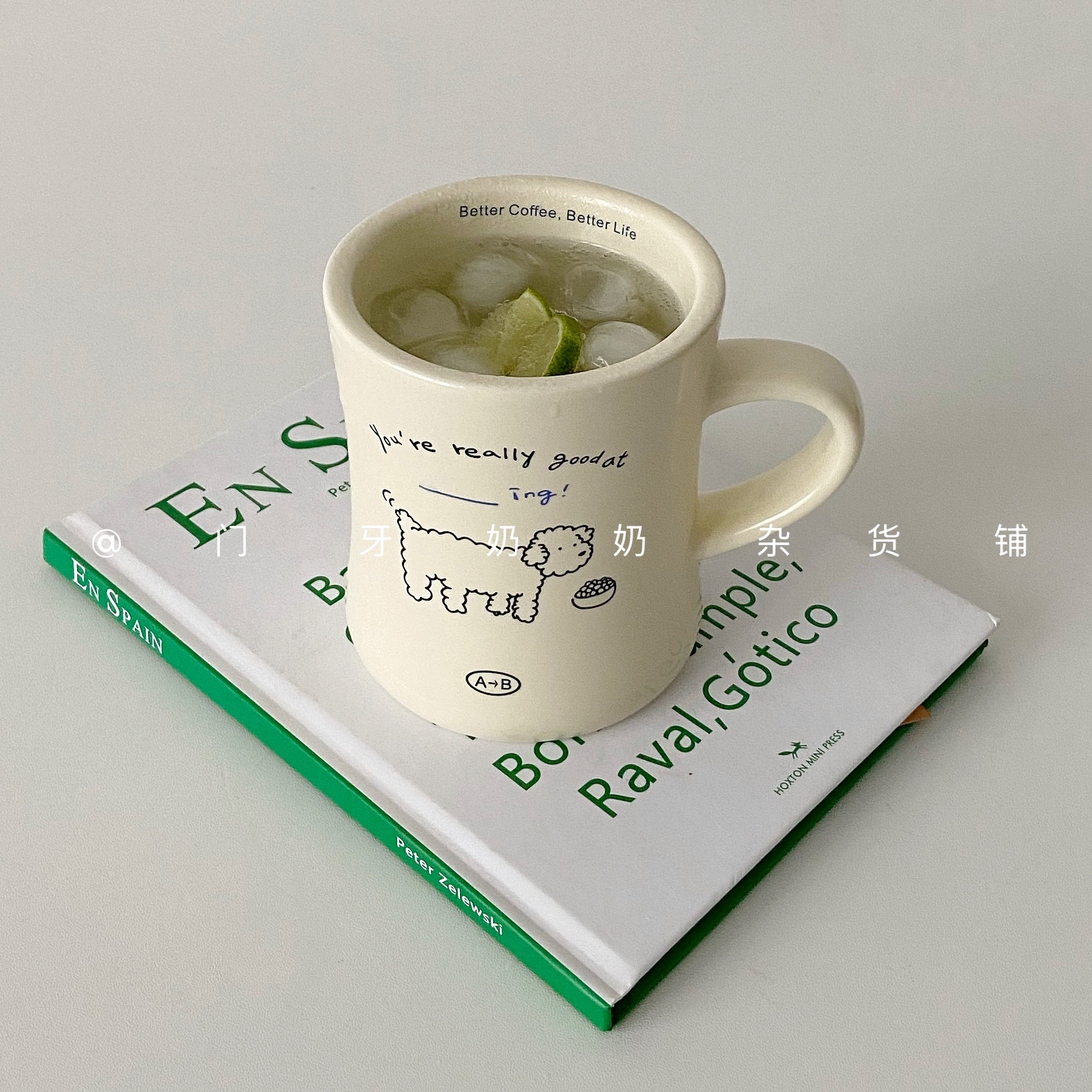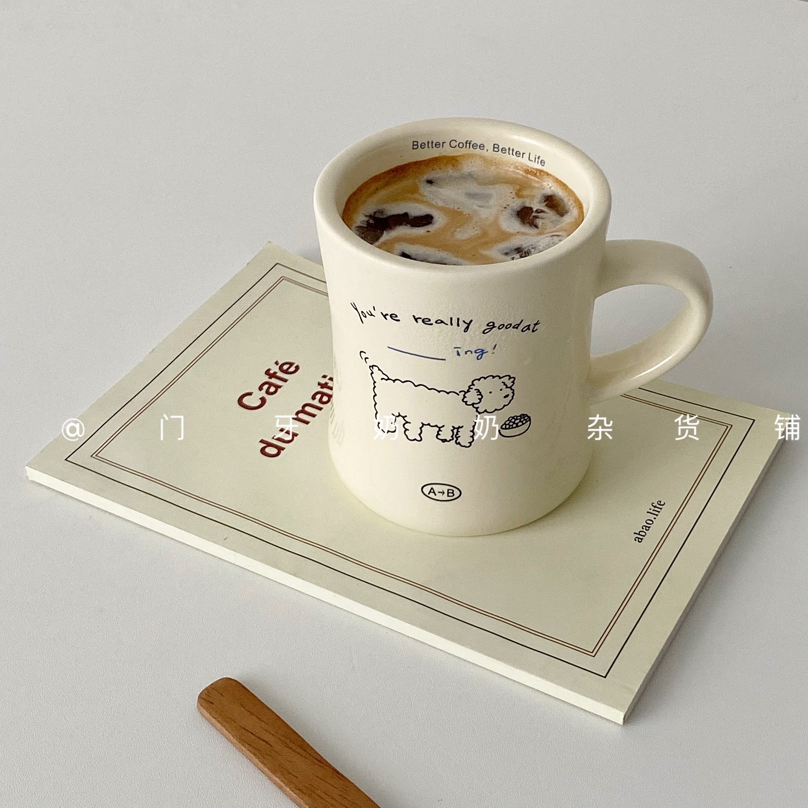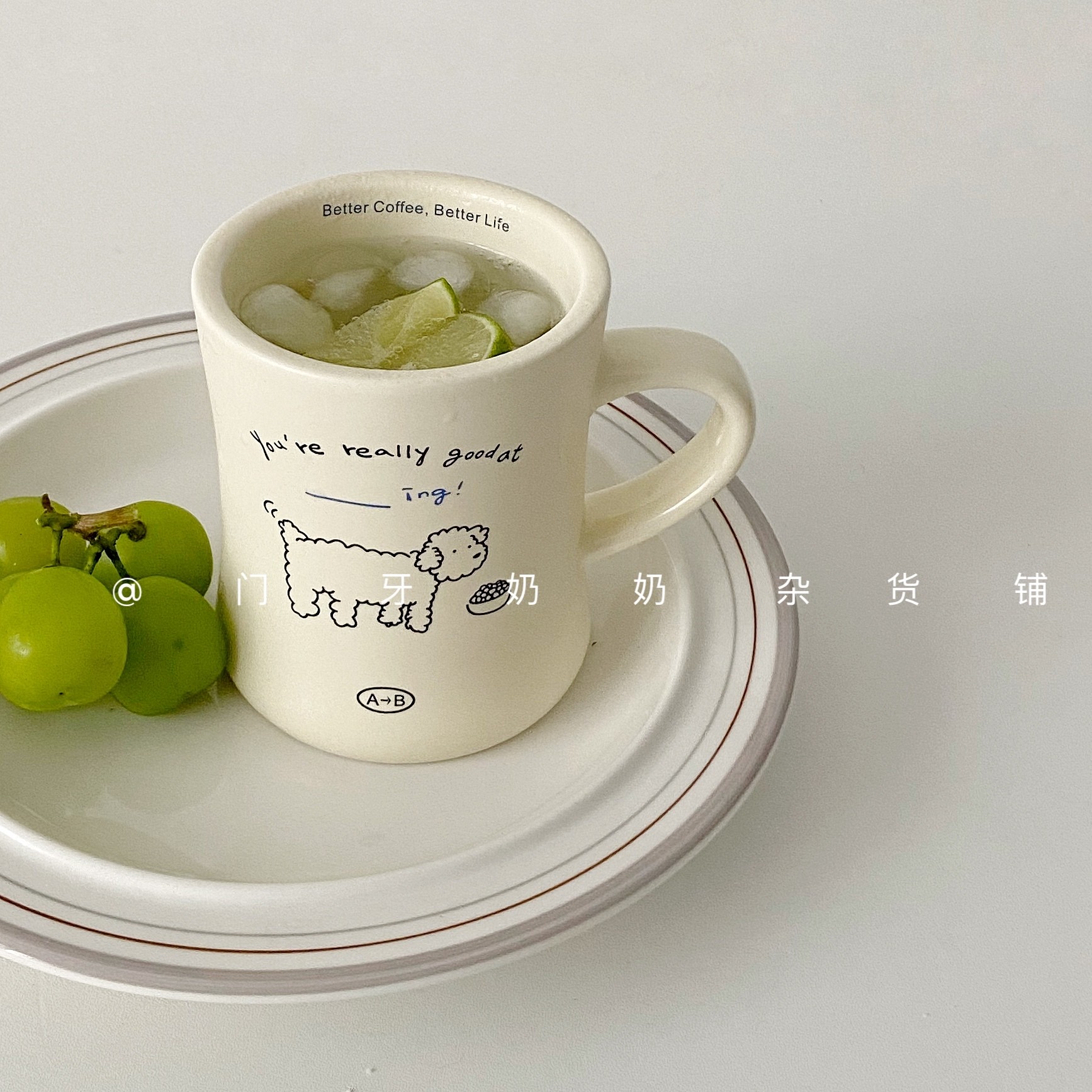 ins风奶油小狗插画陶瓷大马克杯