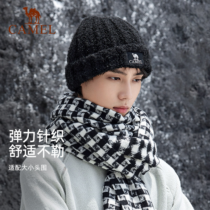 骆驼户外羊毛纱针织帽女大头围护耳防风毛线帽子加厚保暖冷帽女