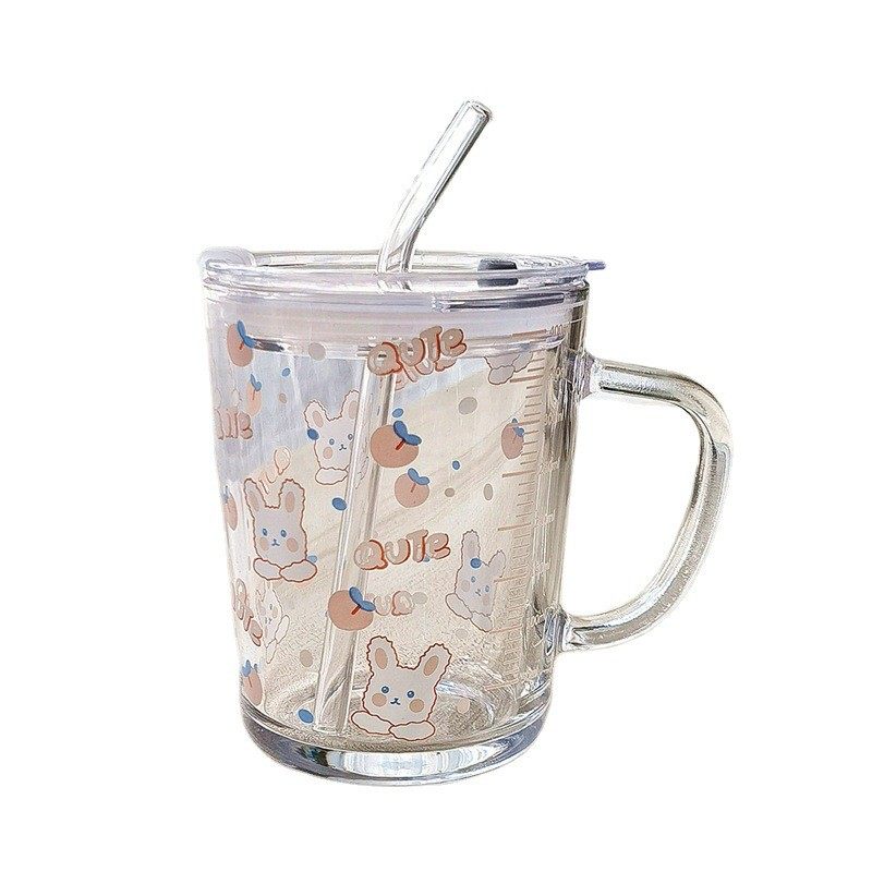 玻璃杯ins牛奶杯高颜值刻度吸管杯加盖勺早餐杯少女心礼物情侣