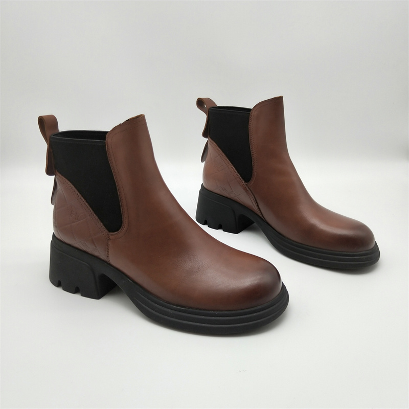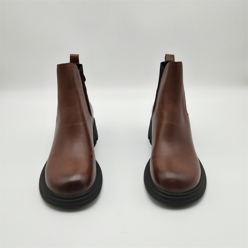 断码处理2025新款真皮牛皮圆头粗跟套筒舒适百搭复古马丁靴女短靴