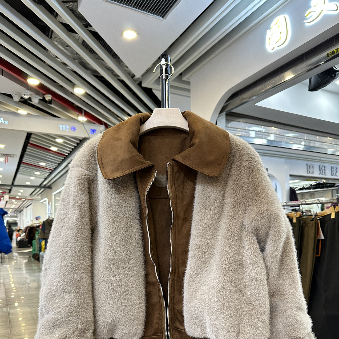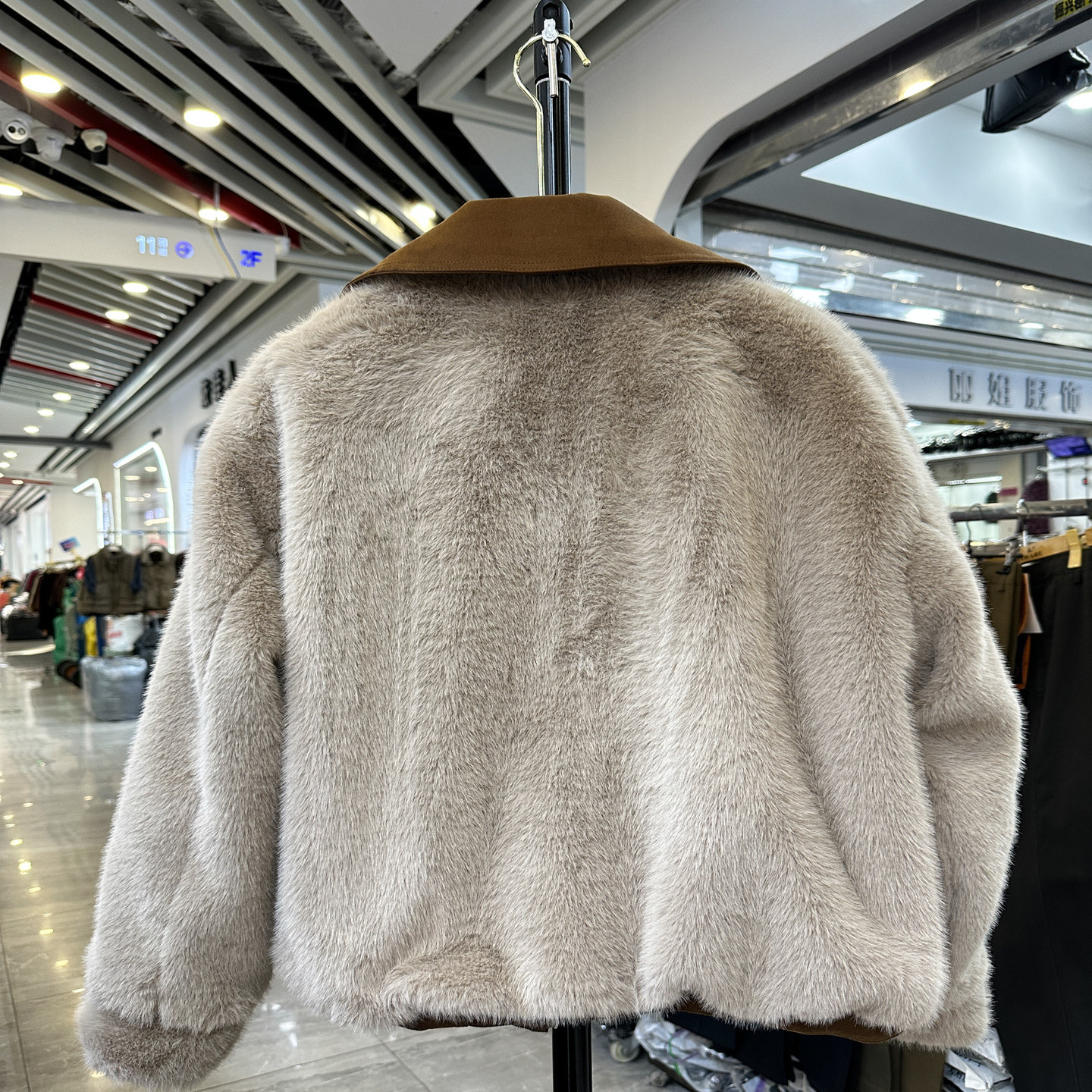 复古牛仔毛领外套加厚保暖短款夹克时尚减龄加绒外套小个子妈妈装