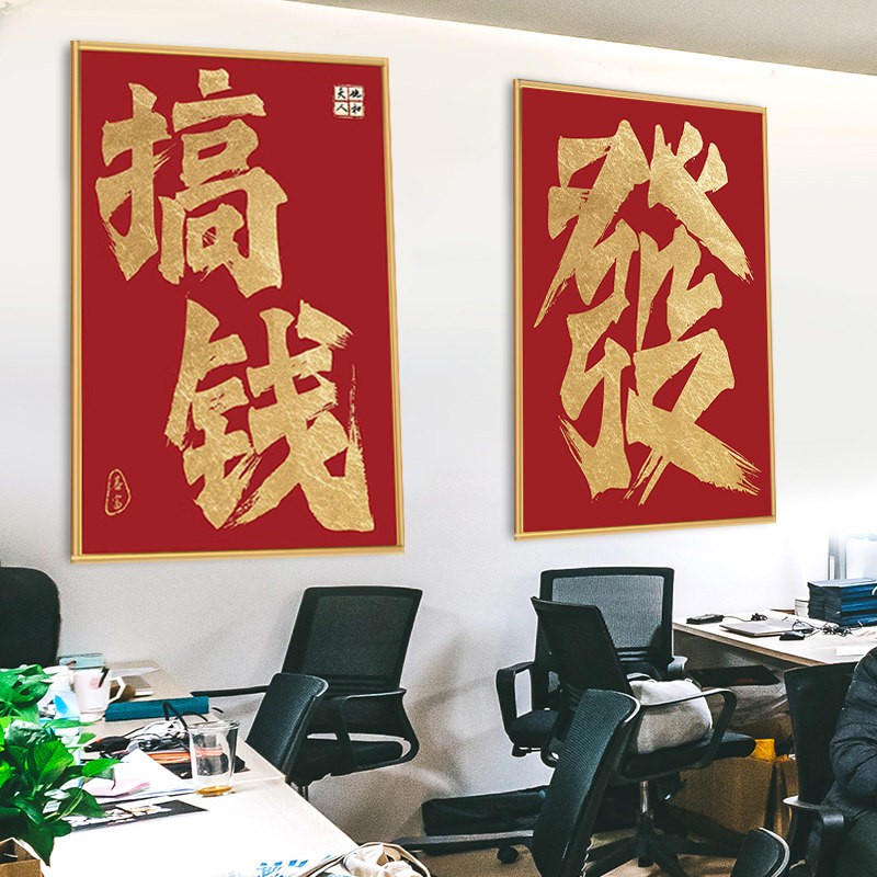 爆单挂画装饰画办公室搞钱公司文化墙氛围布置励志发财棋牌室挂画