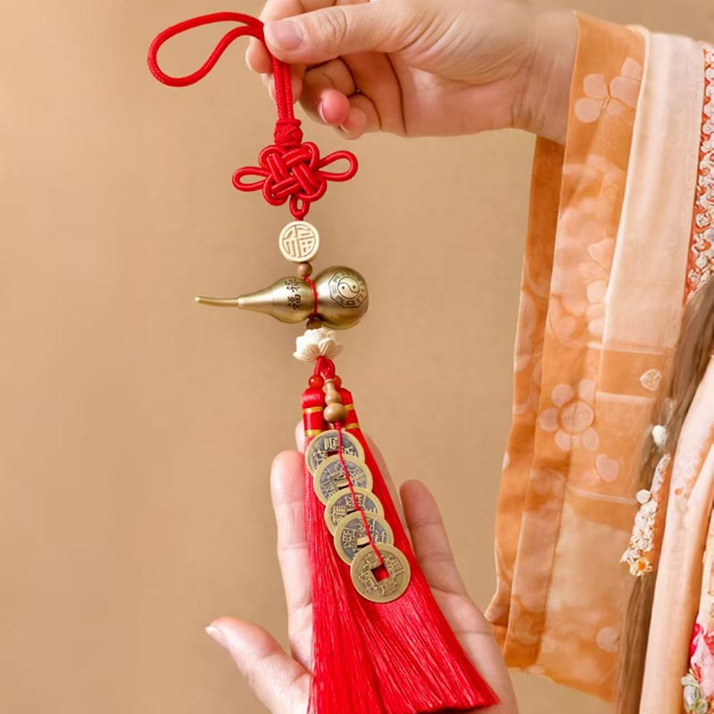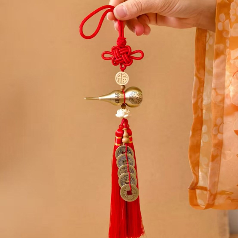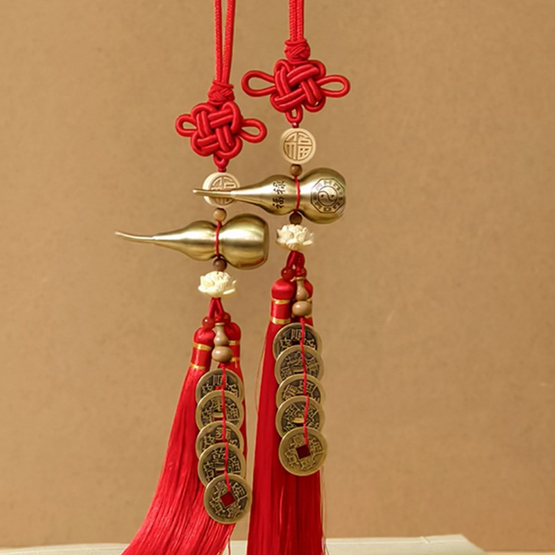 红色中国结五帝铜钱葫芦流苏挂件门对门葫芦穗子挂件乔迁新居挂饰