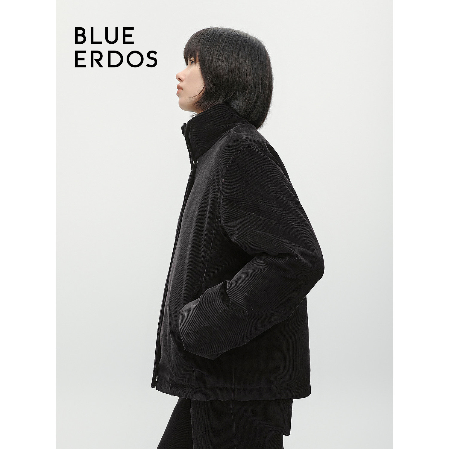 BLUE ERDOS 冬季立领休闲直筒灯芯绒羽绒服女B546JF001