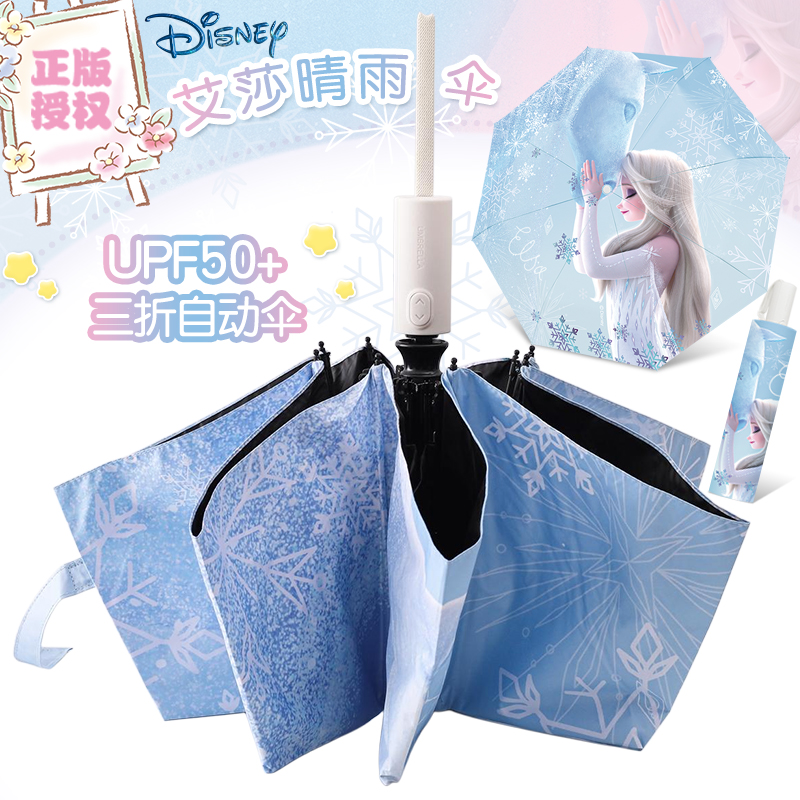 艾莎公主正版儿童晴雨两用雨伞全自动可折叠黑胶遮阳防晒学生成人