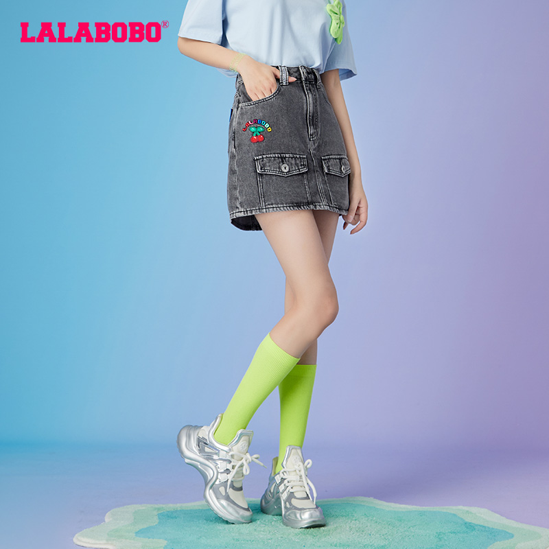 LALABOBO甜酷A字显瘦牛仔半身裙