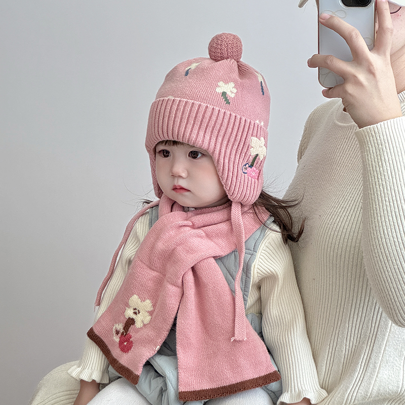 儿童帽子秋冬季保暖加厚围巾套装针织毛线帽女宝宝护耳防风套头帽