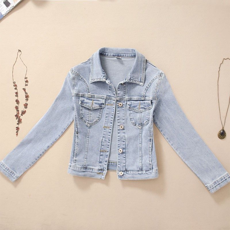 浅色牛仔外套女2024年新款潮春秋短款简约小个子软修身港味设计感