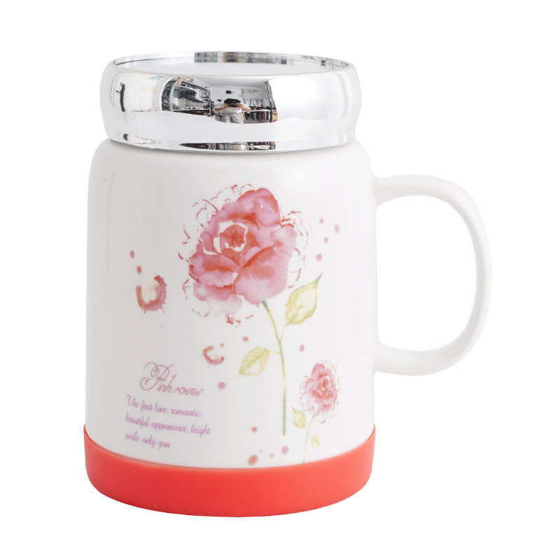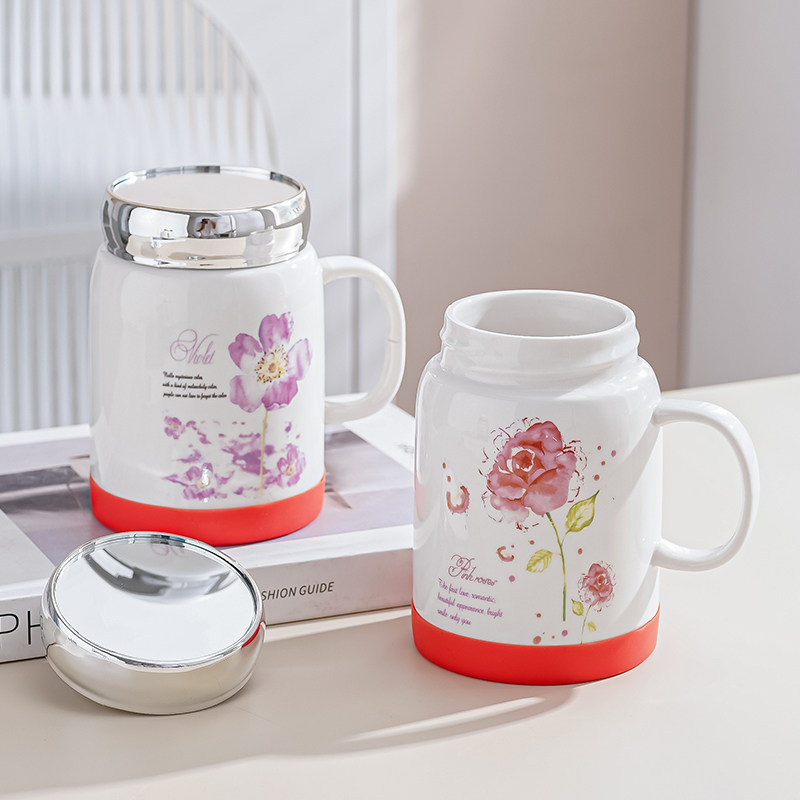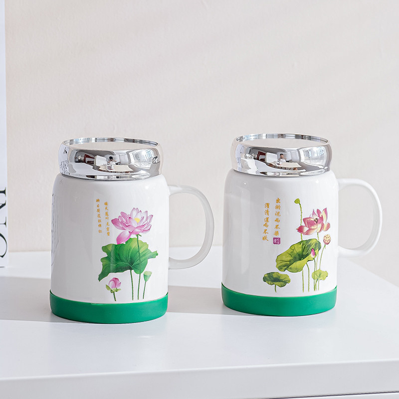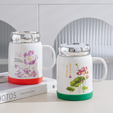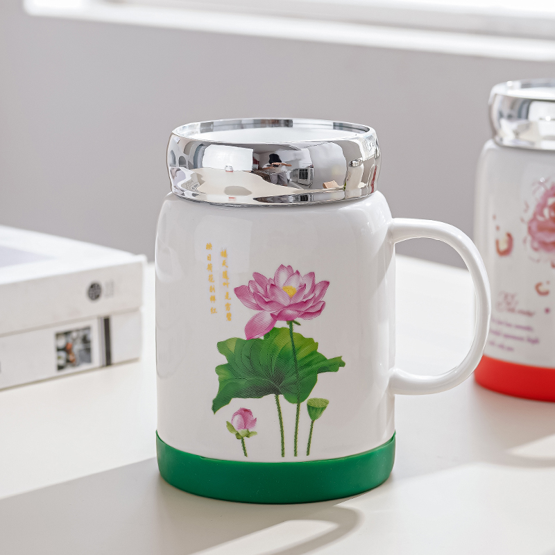 创意莲花陶瓷杯子马克杯带盖大容量情侣杯家用男女水杯办公杯定制