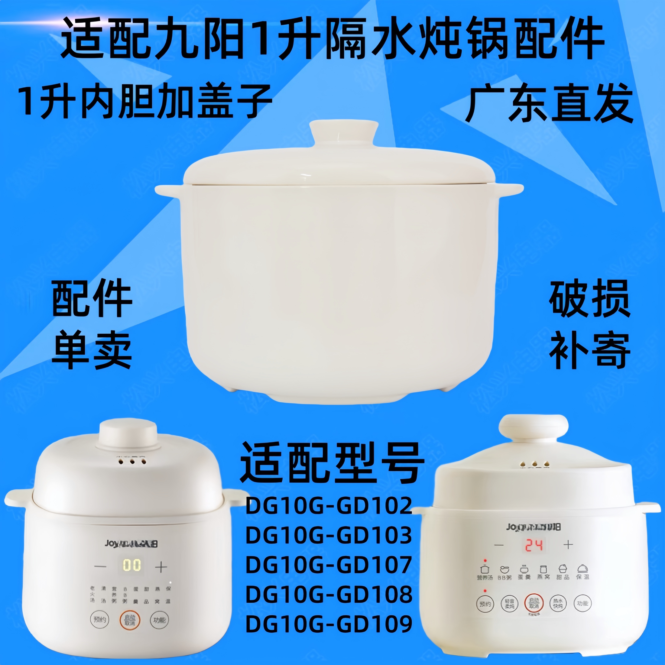 九阳DG10G-GD102/103/107/108/109隔水炖锅陶瓷盖子1升原内胆配件
