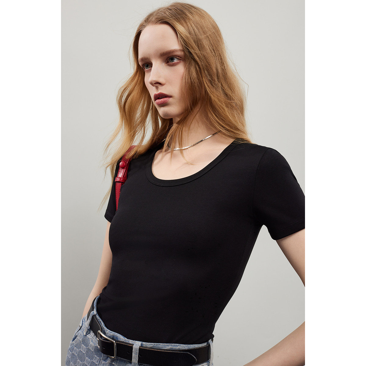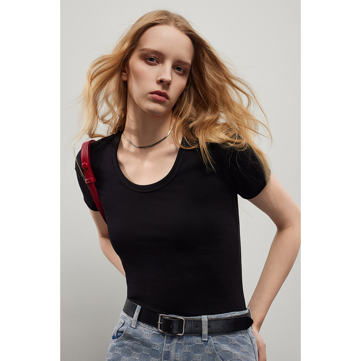 DKNY唐可娜儿2025夏季新款基础款纯色简约百搭紧身U型领短袖T恤女
