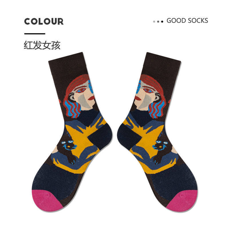 欧美花袜子复古高筒袜ins长款复古抽象情侣袜长筒高帮花袜子