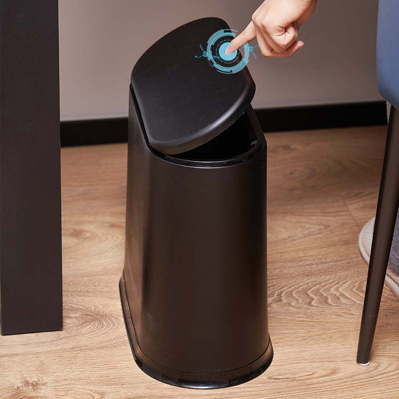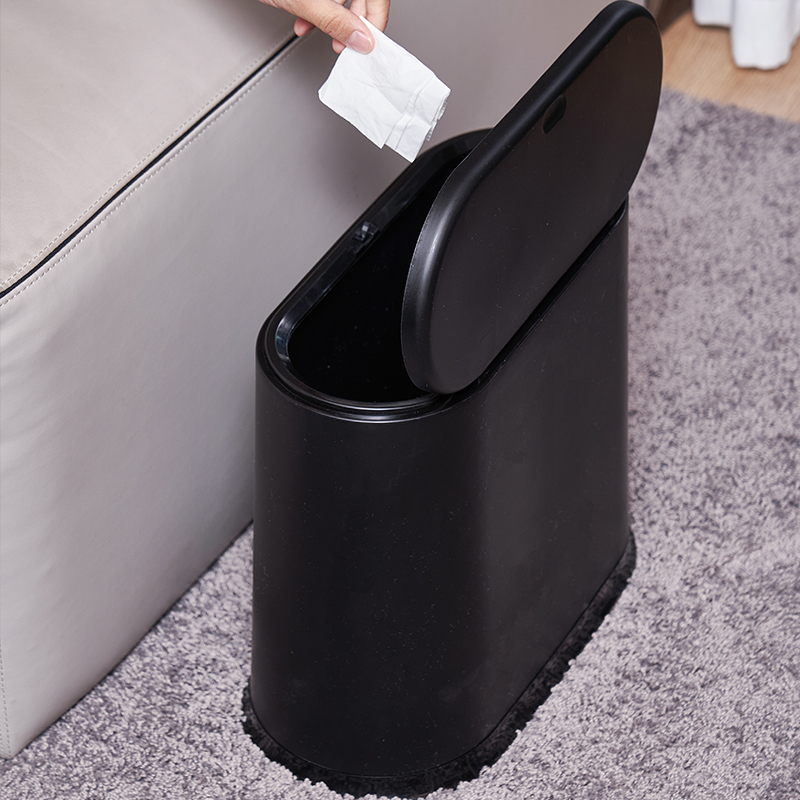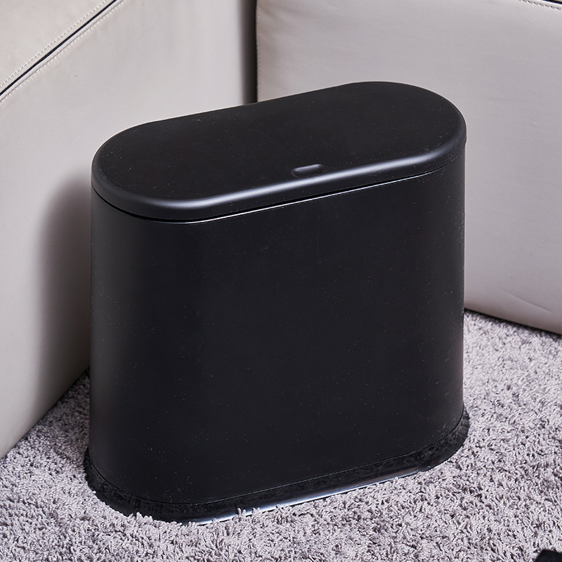 垃圾桶家用高颜值卧室客厅厕所卫生间浴室窄缝双层带盖收纳桶黑色