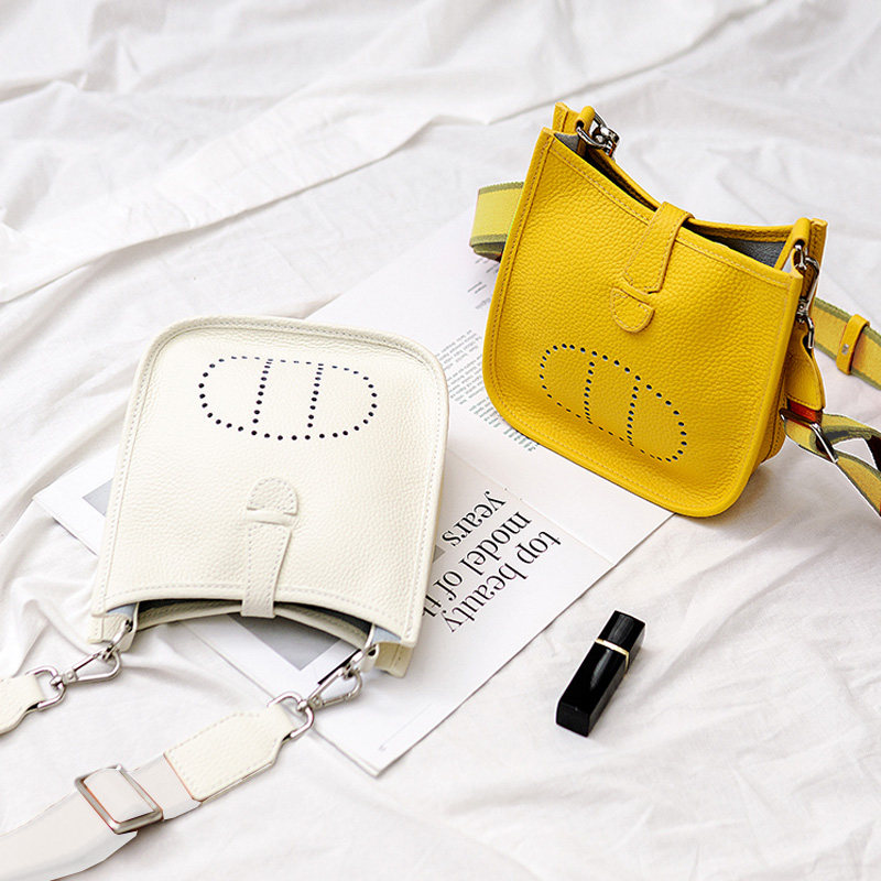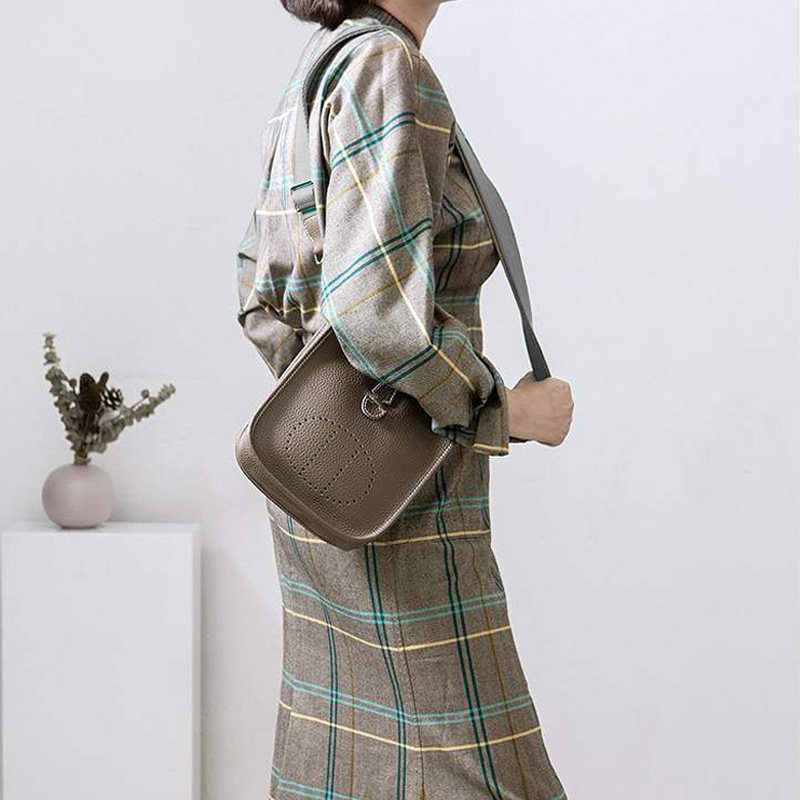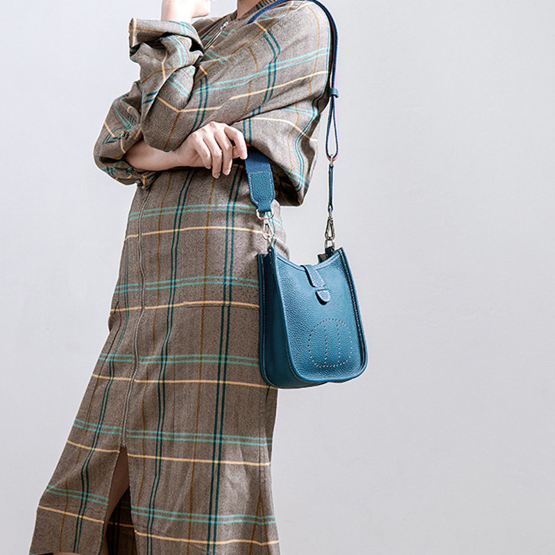 真皮女包手缝大象灰慵懒风水桶包荔枝纹斜挎包头层软牛皮迷你小包